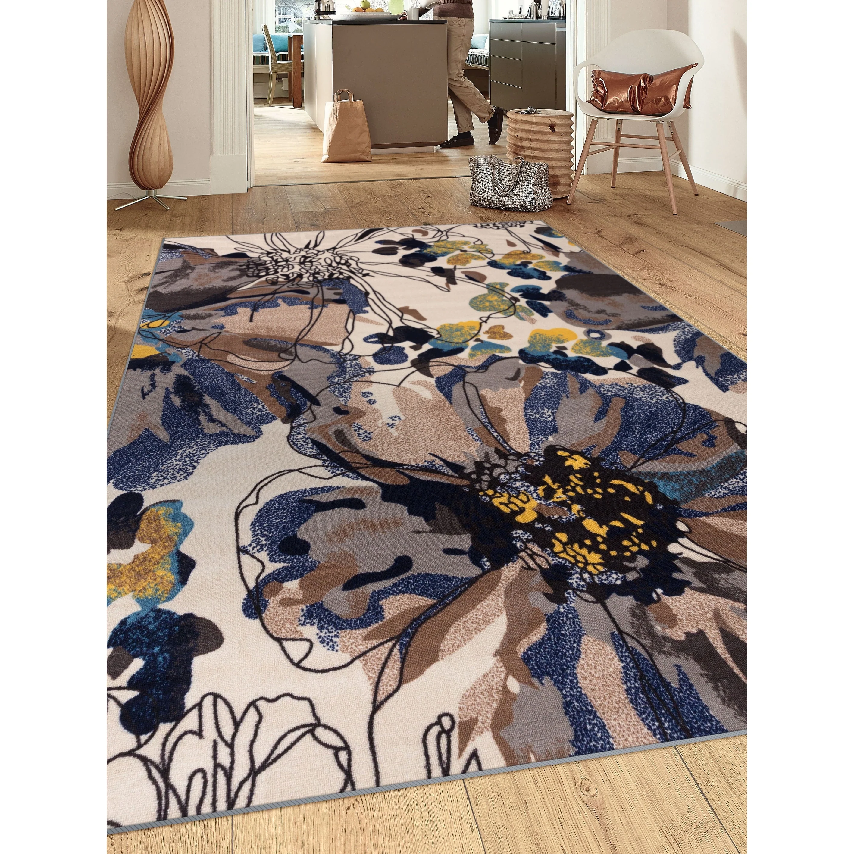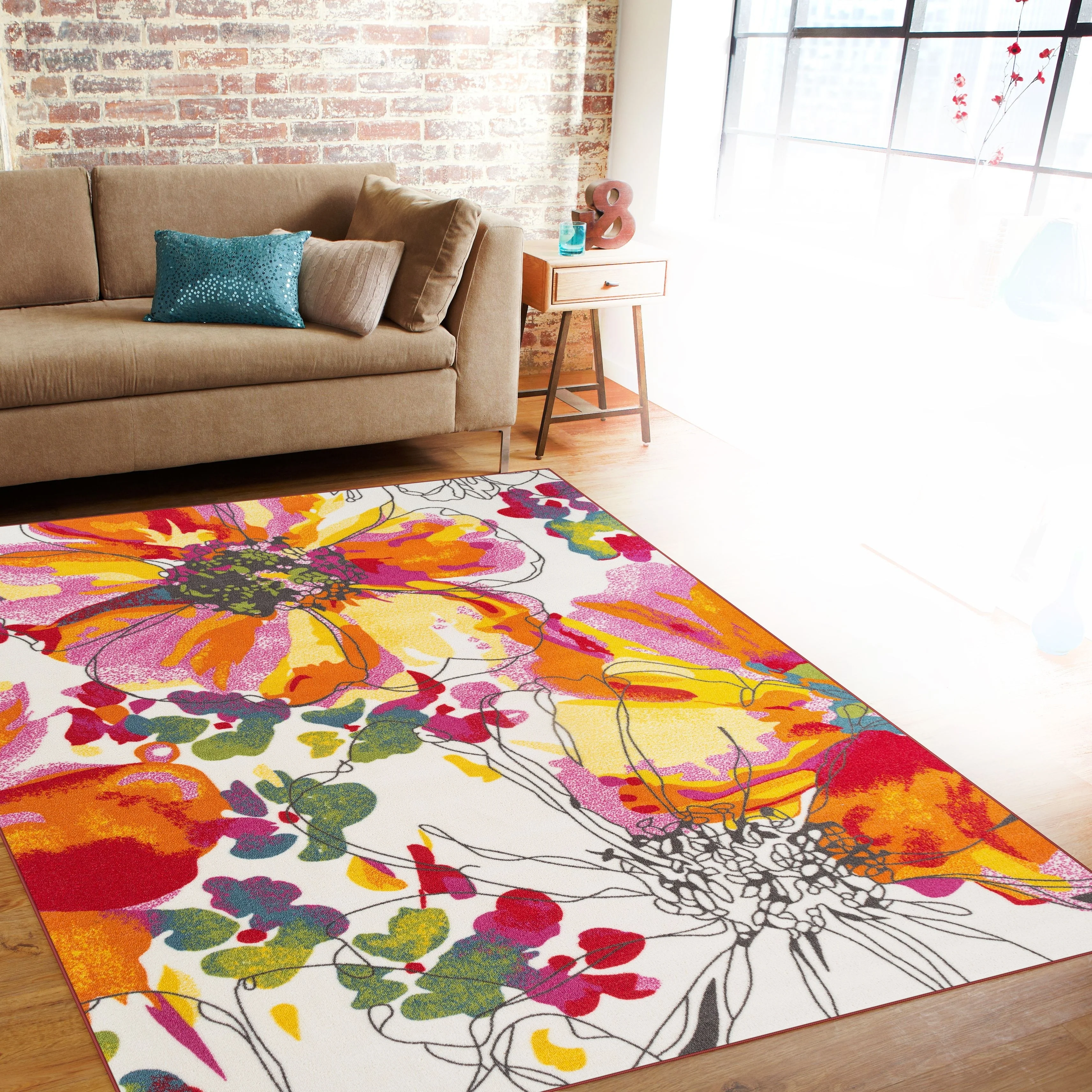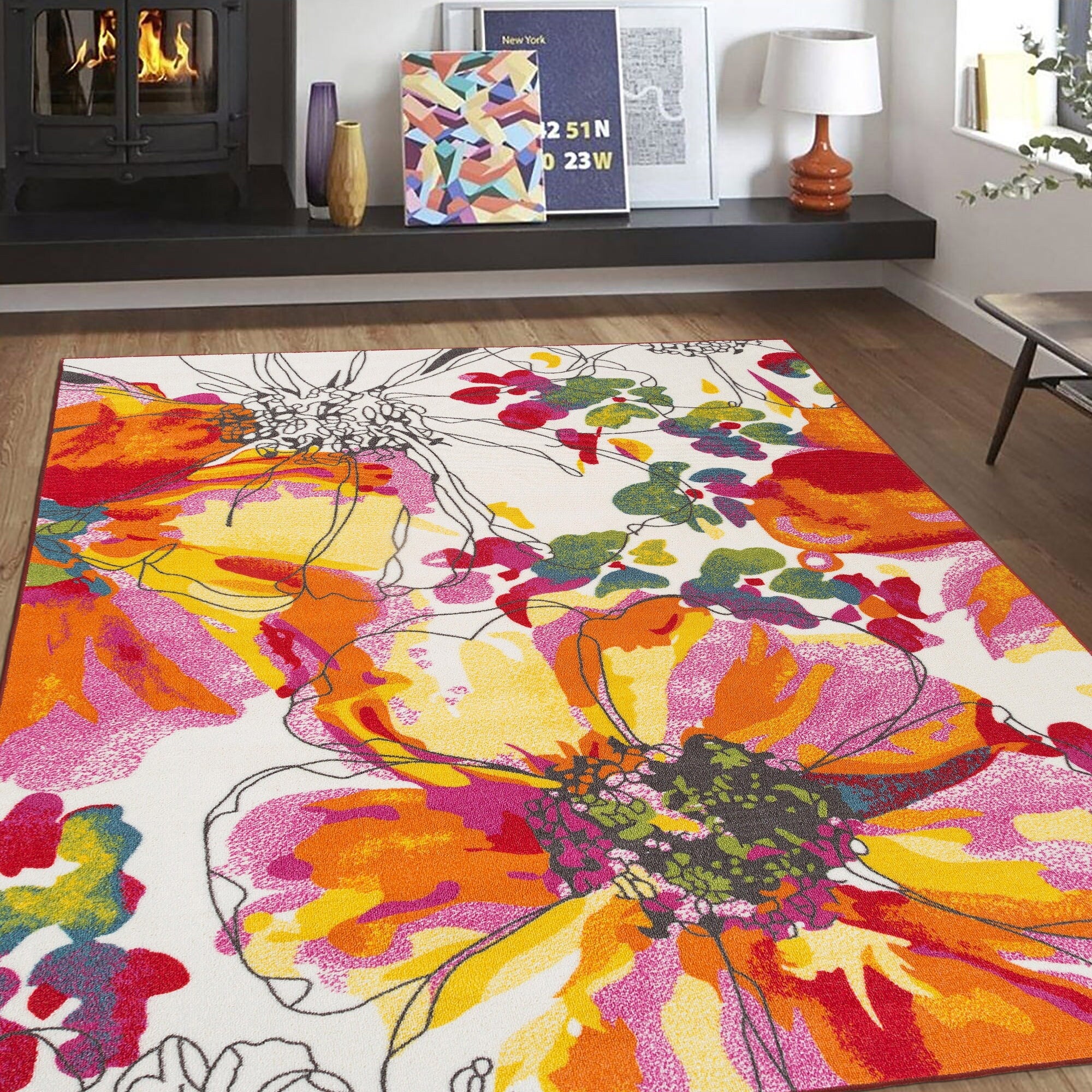 World Rug Gallery Modern Bright Flowers Non-Slip Area Rug Multi