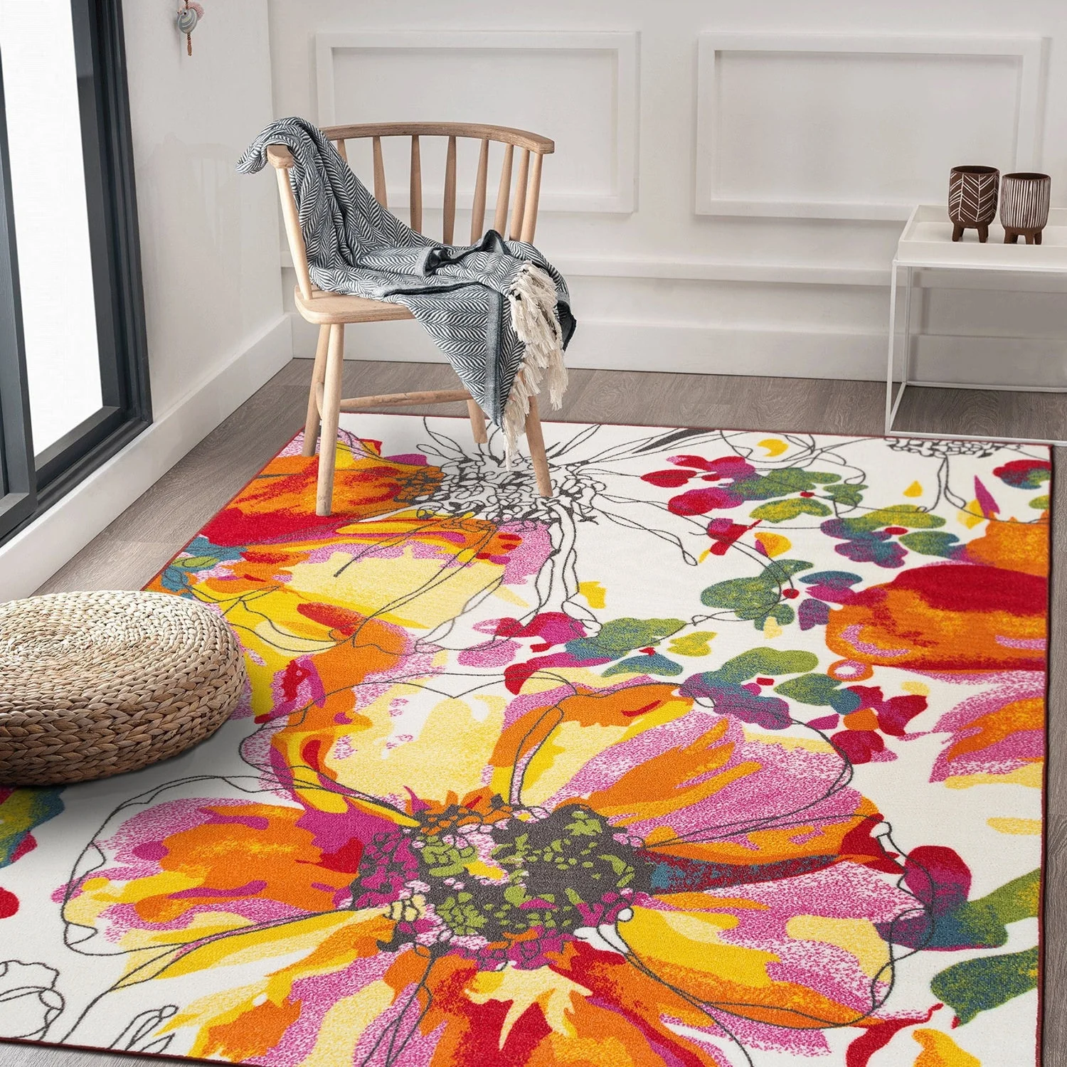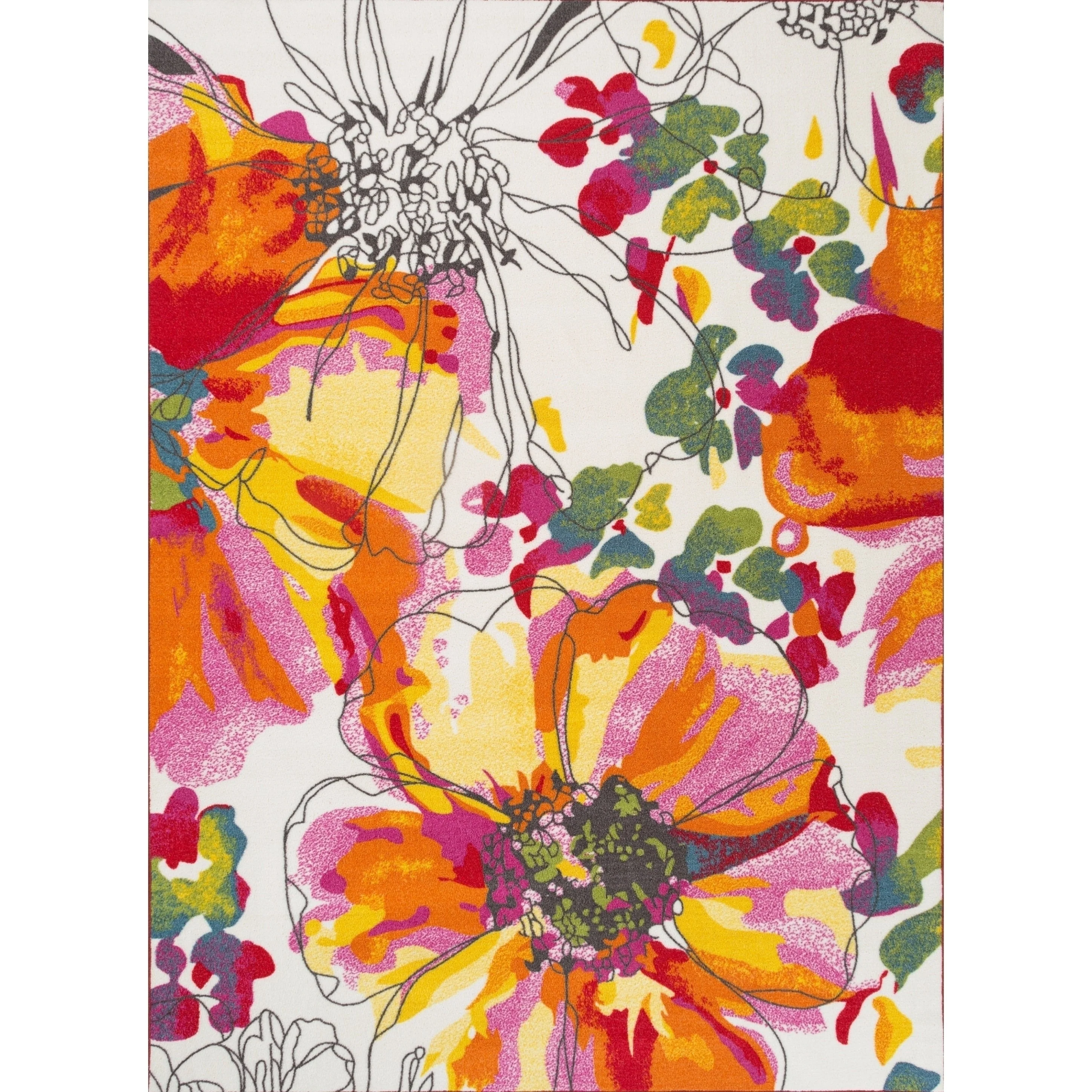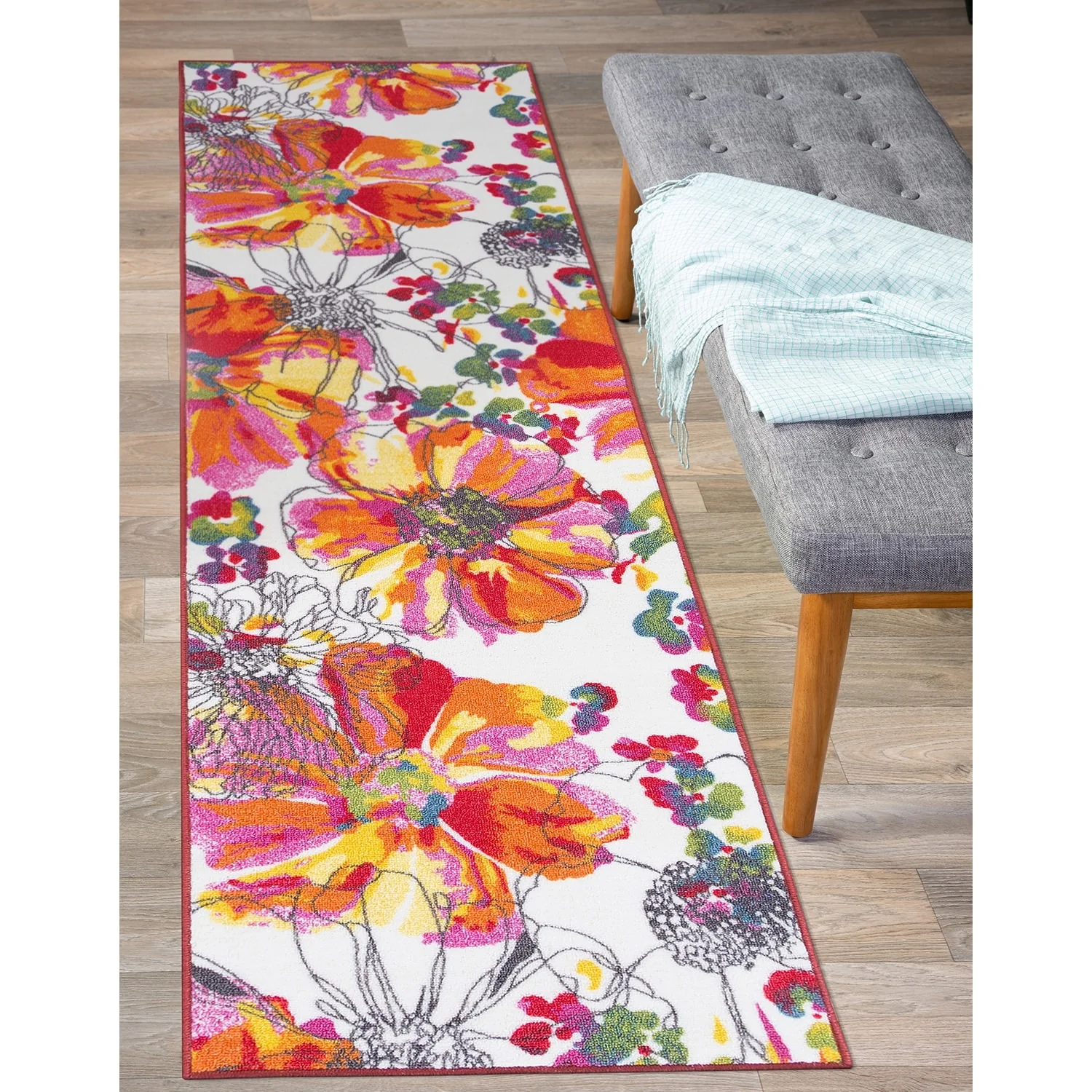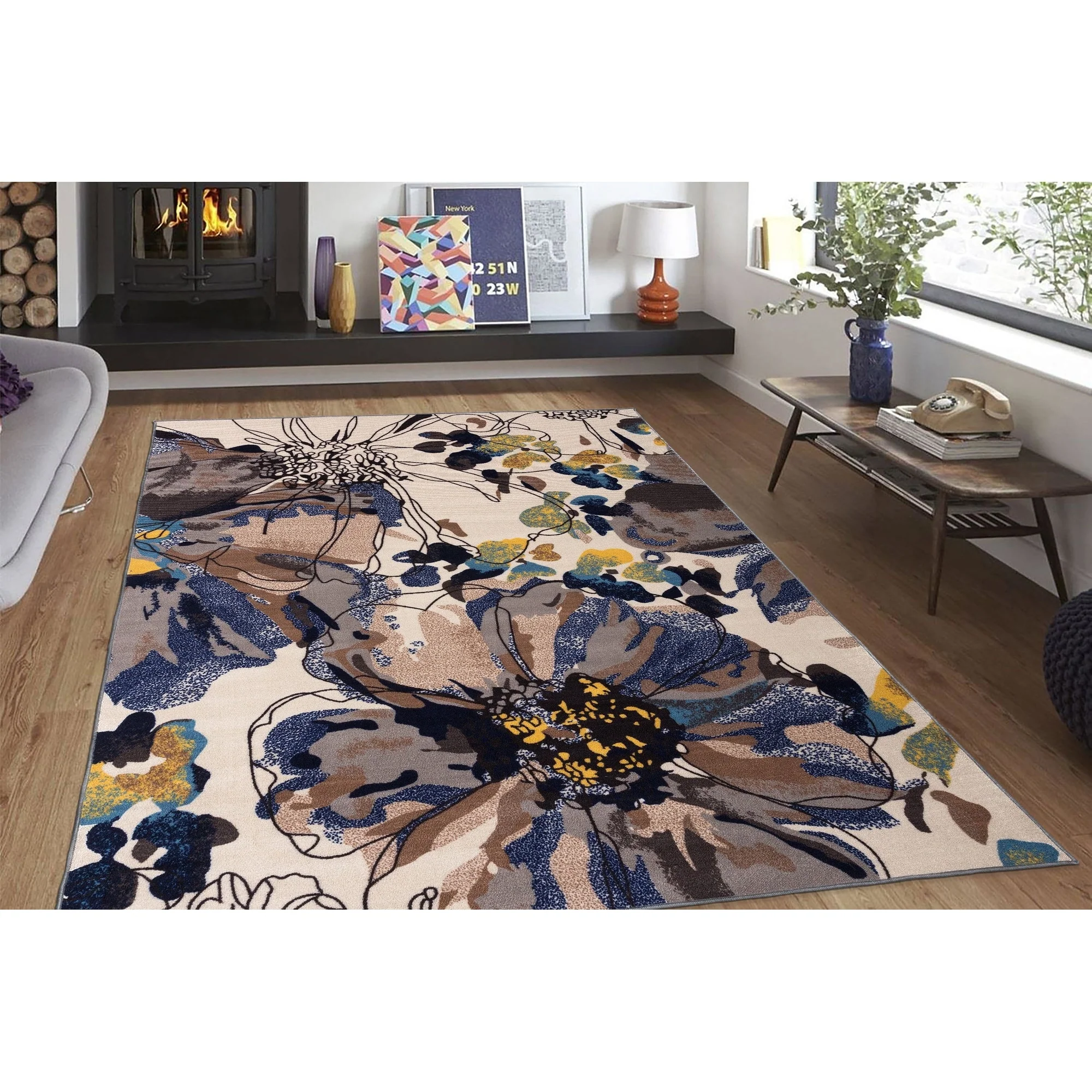 World Rug Gallery Modern Bright Flowers Non-Slip Area Rug Multi
