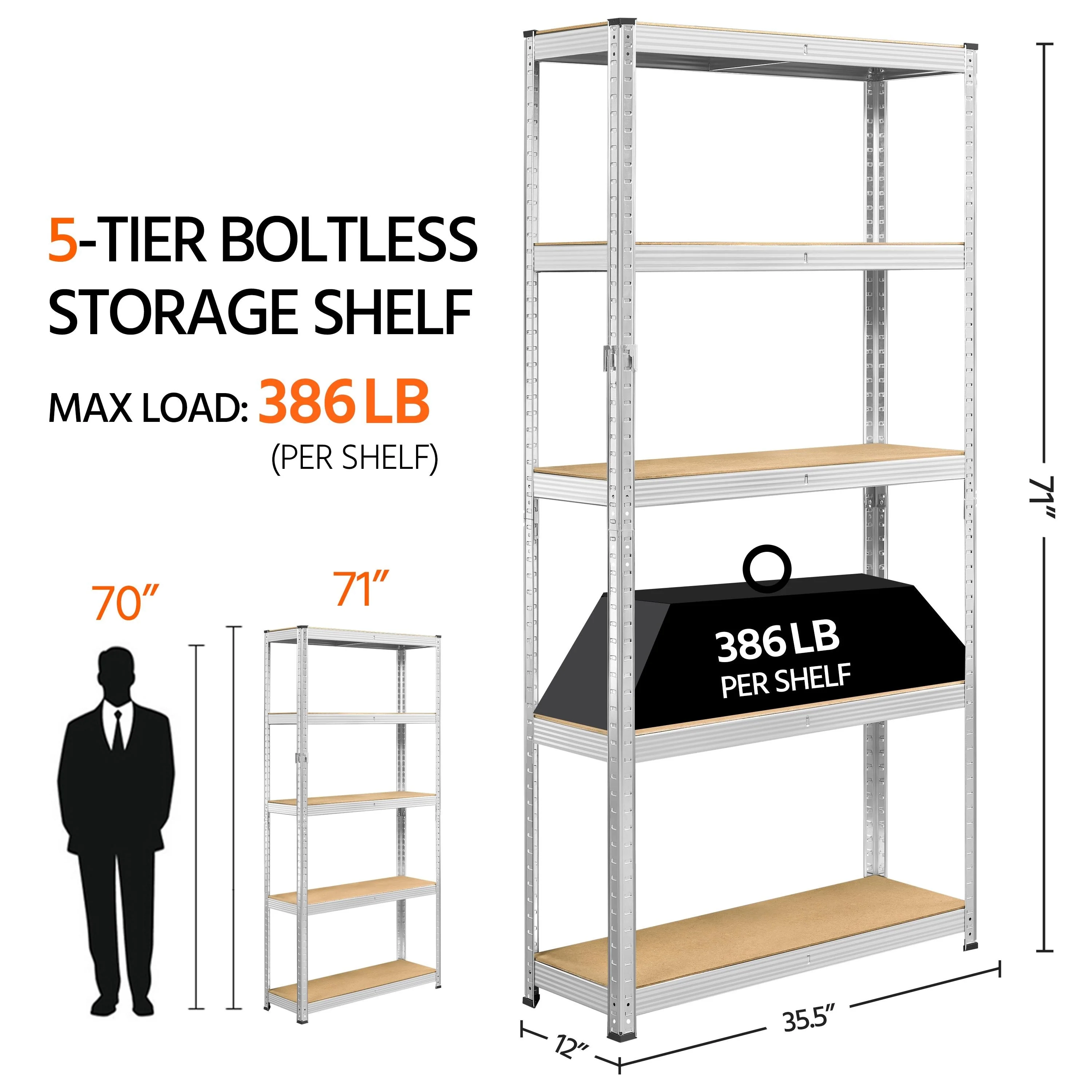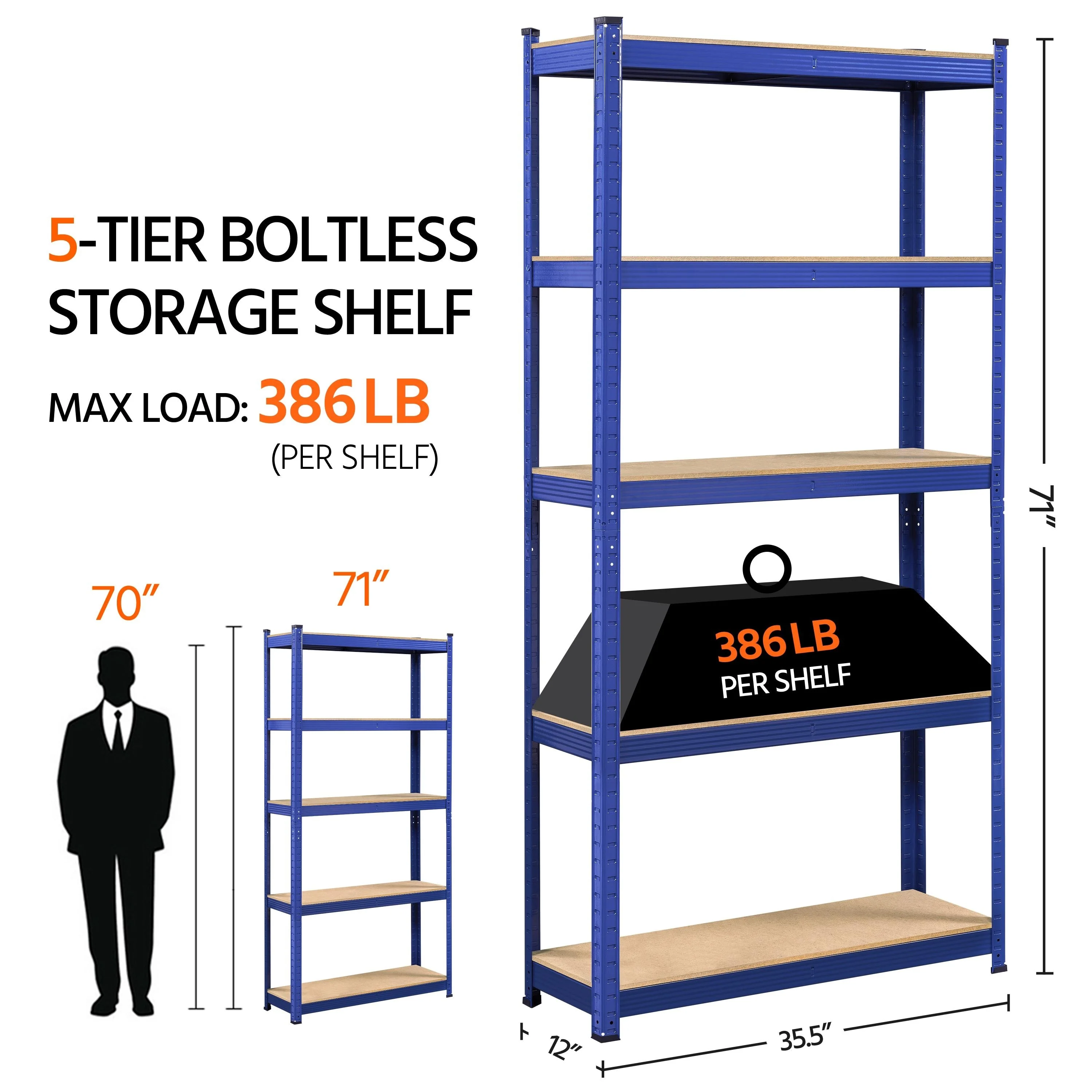 • Yaheetech Adjustable 5-Tier Shelf Metal Storage Rack for Home/Office/Garage - 35.5″ L × 12″ W × 71″ H