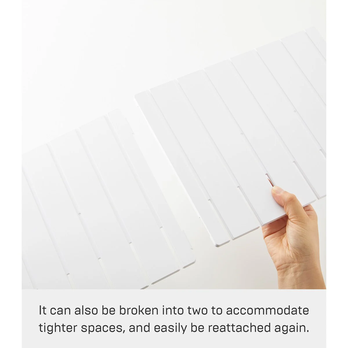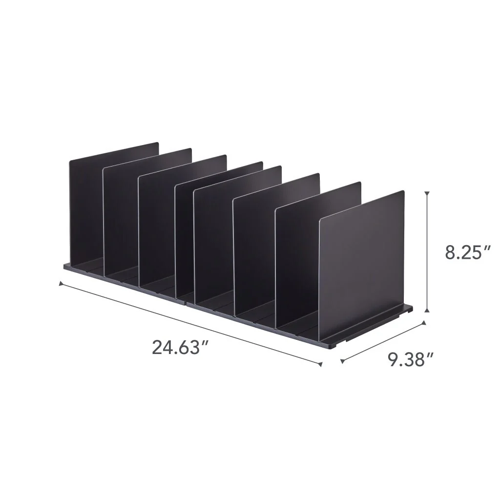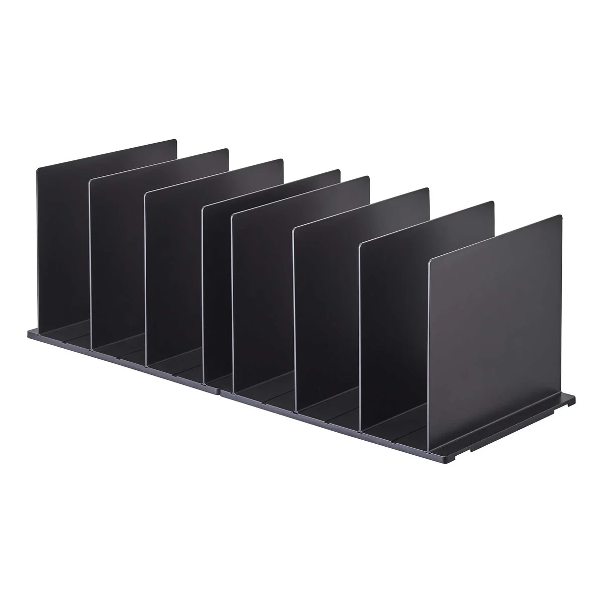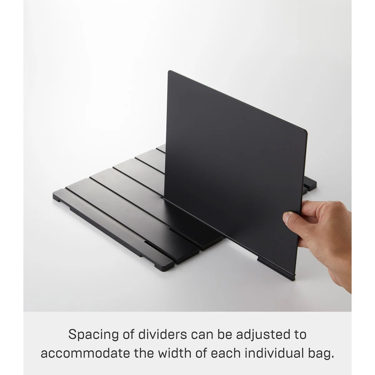 [Keep your purses and bags organized] This interlocking shelf divider is features a foolproof, simple design. Keep your collection sorted and safe from damage, even when space is tight., [Durable, adjustable dividers] The dividers provide support and durability to keep purses and bags upright. Simply insert the divider in the correct space to accommodate the width of each individual bag. It is available in white and black., [Can be broken into two pieces] Not only can the position of the dividers be adjusted to hold bags of different widths upright, the base can also be broken into two to accommodate tighter spaces, and easily reattached again when necessary., [Care instructions] The purse organizer can be cleaned by wiping with a damp cloth and drying immediately.