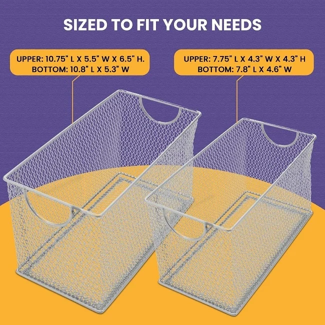 Organize cleaning supplies, toys, and other miscellany with this practical storage basket. Handles attached to the metal frame make this basket easy to carry, while the stainless steel construction ensures durability.