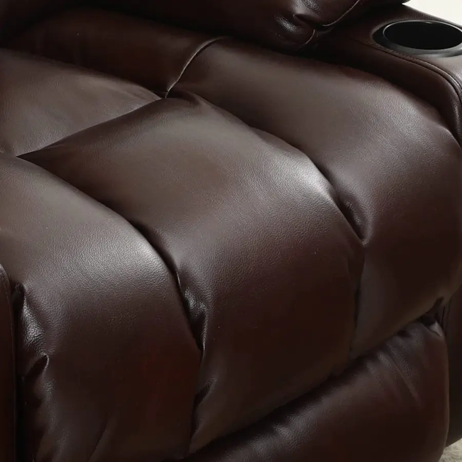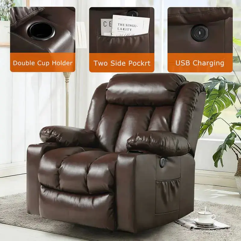 • 【Comfortable And Durable Upholstery】 - Overstuffed backrest and seat cushion will bring you more comfortable, just like the whole body is wrapped up in chair.Soft and smooth leather provides a warm and soft feeling, which is functional for optimal comfort.The extending footrest and reclining feature of this recliner allows you to fully stretch and relax, like reading, sleeping, watching TV.