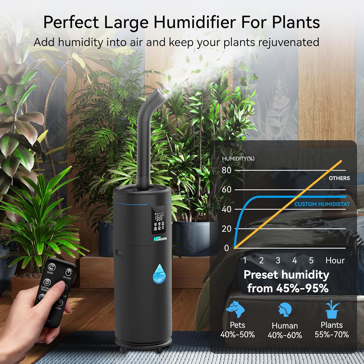 - 【Greenhouse Plant Humidifier】Honovos humidifiers do not require any filters,reduces the ongoing costs of running this humidifier, the humidifier perfect for office, bedroom, great room, nursery, plants, large room, pets and indoor use. WARNING:FILTERED WATER FOR HUMAN TO AVOID WHITE POWDER FOR HEALTHIER BREATH.TAP WATER FOR PLANT;This large room humidifier helps you sleep better. The tower design also fits in nicely with modern decor!