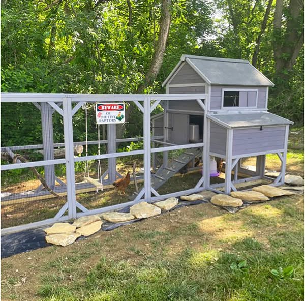 • Expandable run area with 3 standing perches provides a larger 27.75 ft² ground activity space. A large side door easy to catch the chickens.