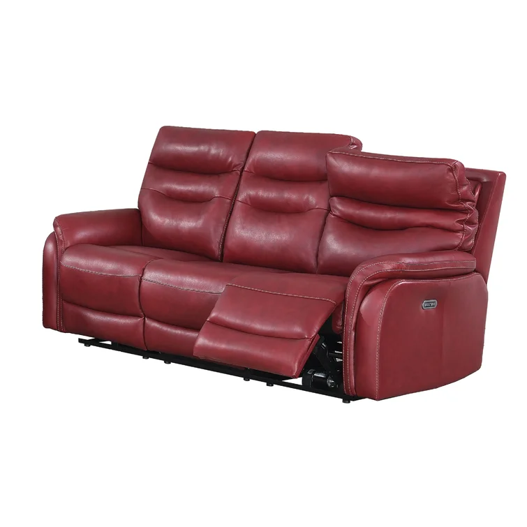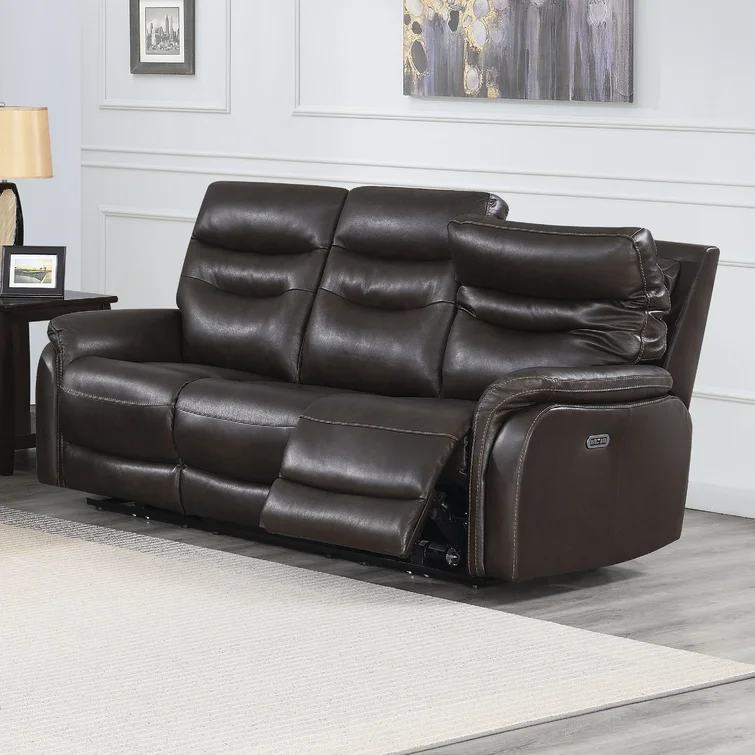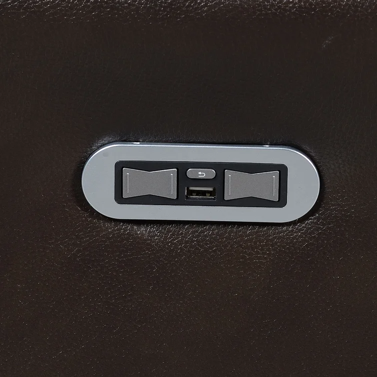 The power recliner sofa is leather power reclining at its best. The sofa's contemporary styling and top-grain leather seating surfaces with high resiliency foam cushions provide unsurpassed comfort. Control everything from your seat with a control panel that powers the reclining footrest and headrest with a USB port for recharging. For convenience, the home button returns all items to their original position.Features