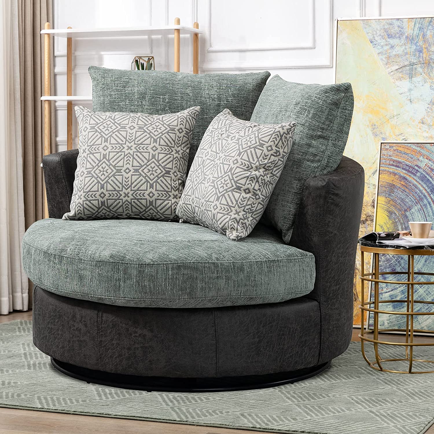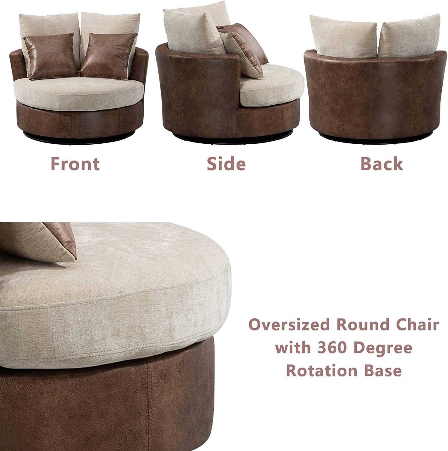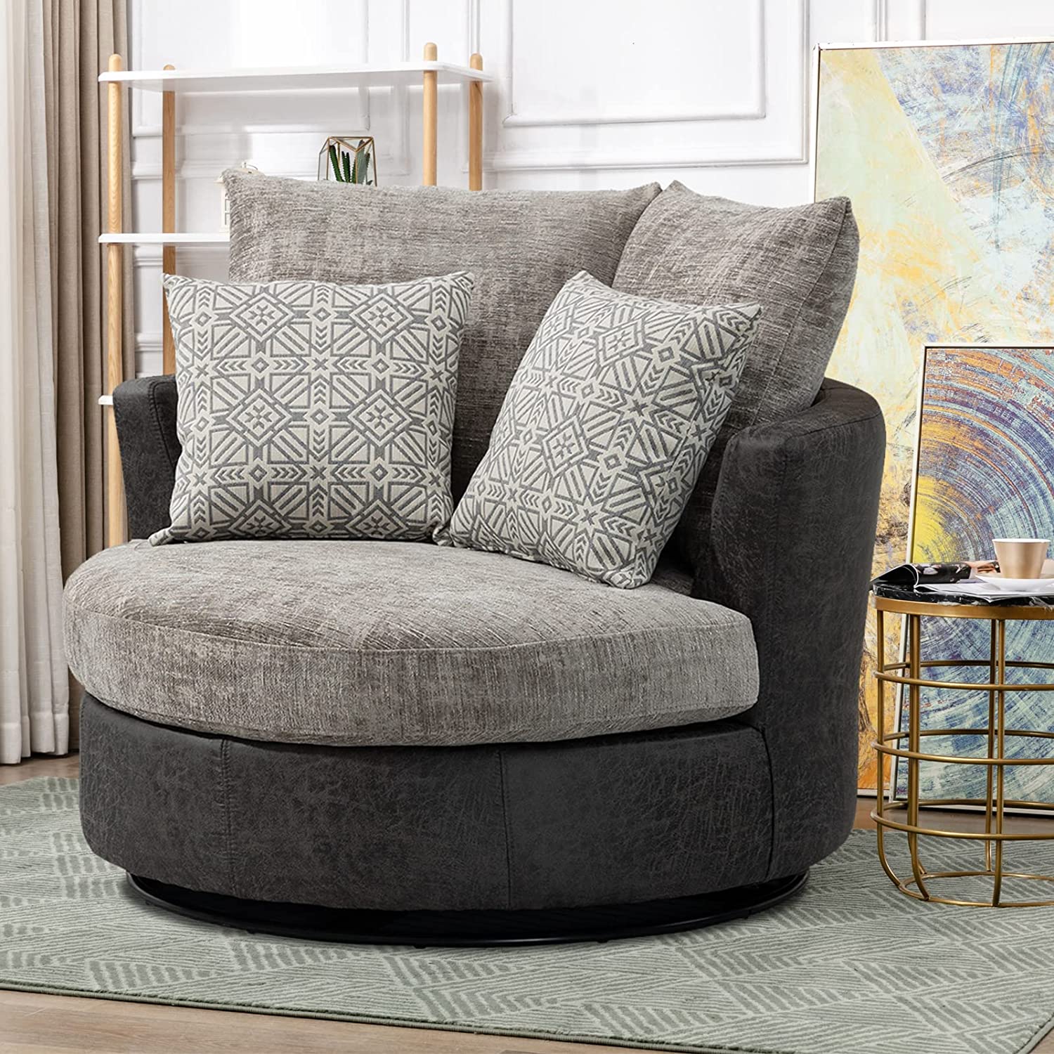 • [360 Degree Swivel]: The modern accent chair is installed on a 360 degree swivel base with support of plywood frame. The strong mechanics enable this oversized sofa to rotate freely, which increases fun and joy to sit on.
