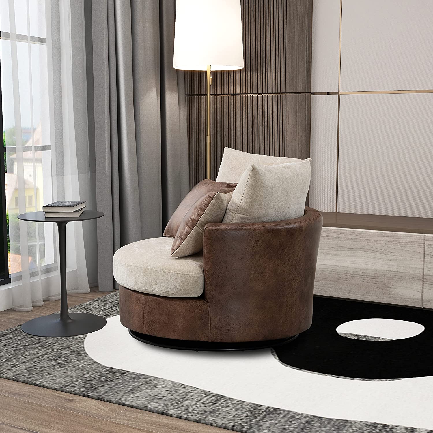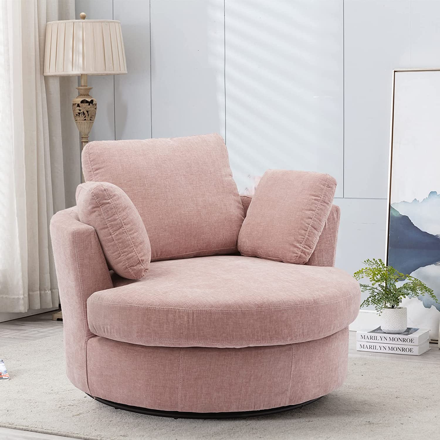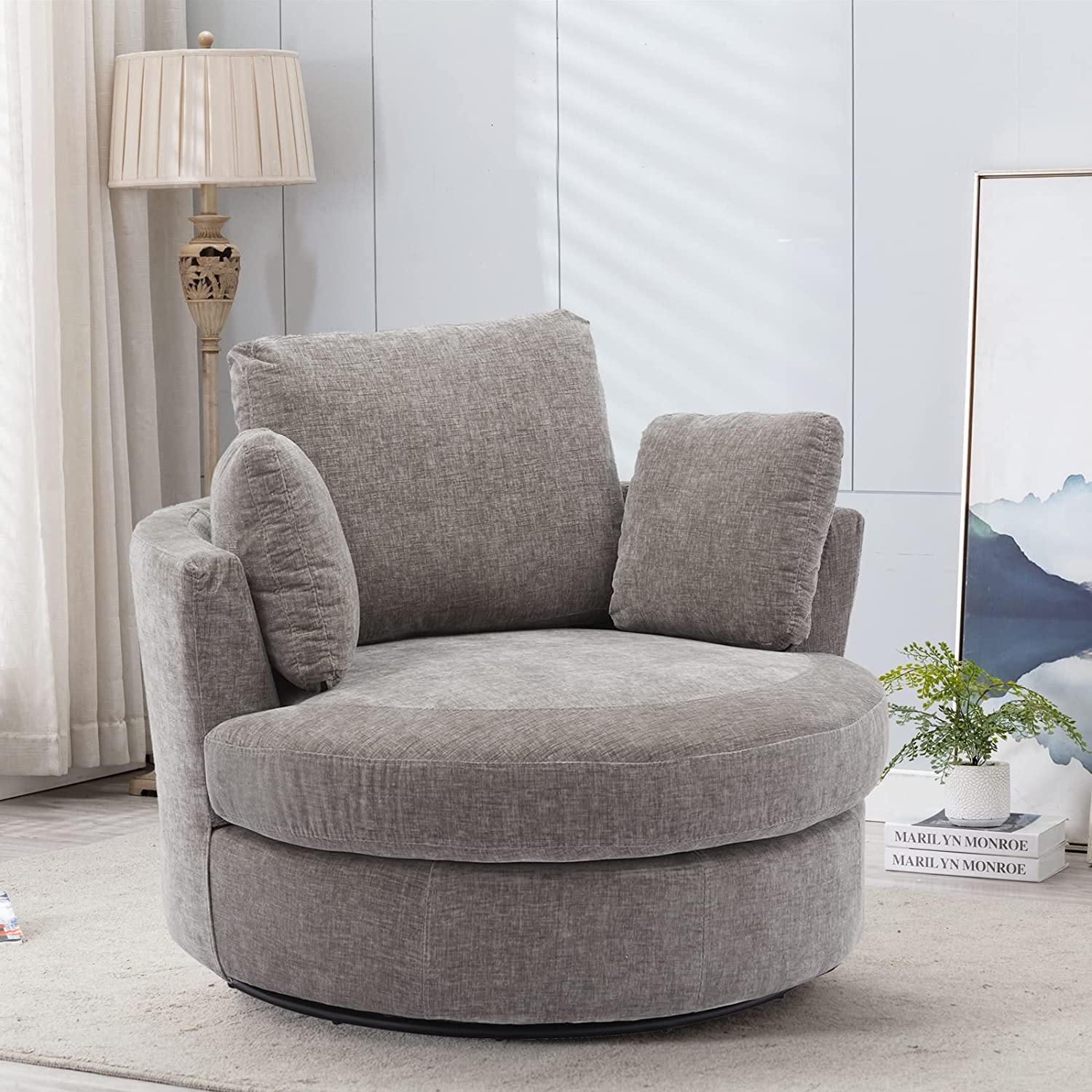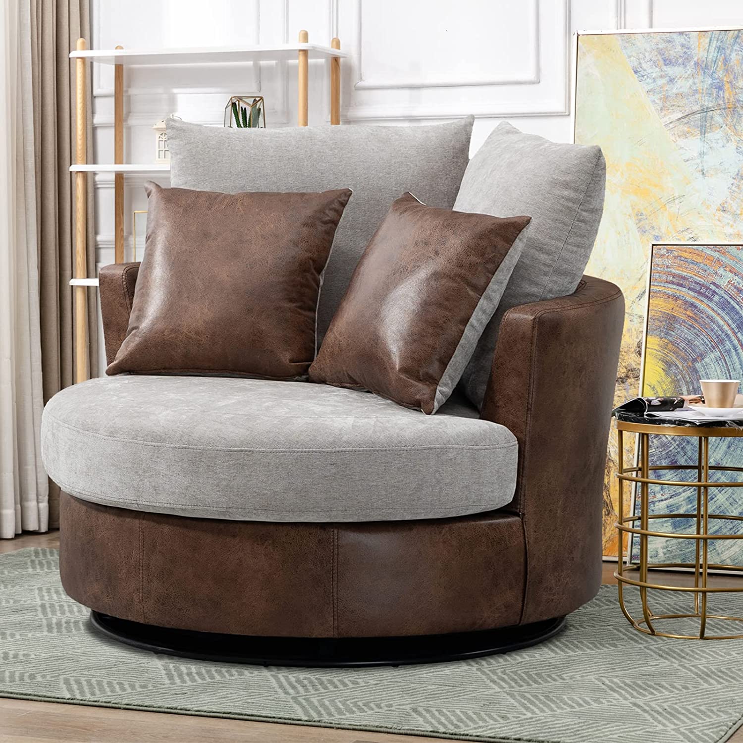 • [360 Degree Swivel]: The modern accent chair is installed on a 360 degree swivel base with support of plywood frame. The strong mechanics enable this oversized sofa to rotate freely, which increases fun and joy to sit on.