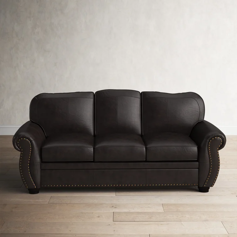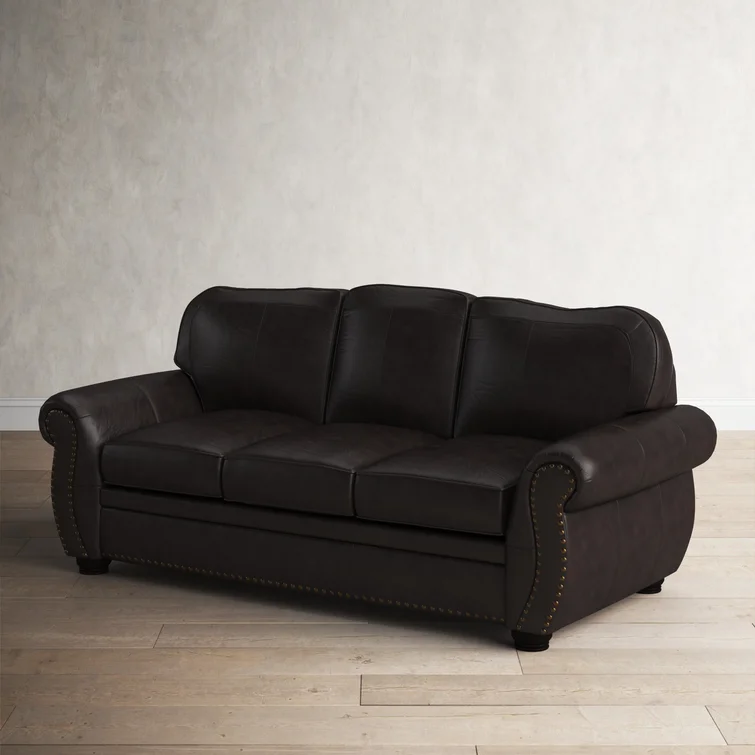 • Ethridge 84'' Genuine Leather Rolled Arm Sofa