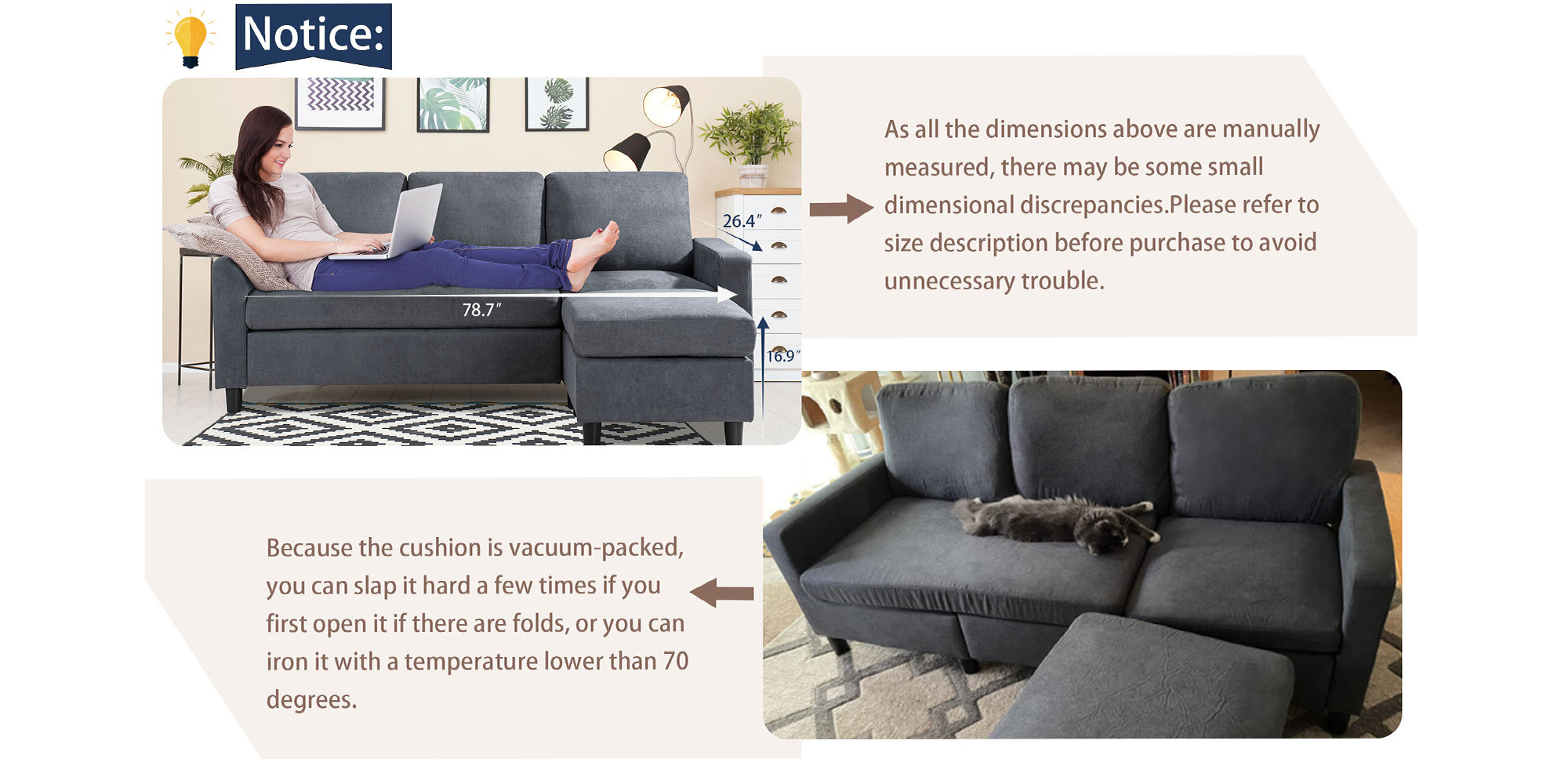Our convertible sectional sofa with the movable cushions and ottoman. The 105-degree tilt angle gives you the maximum support for your back, hips, and legs.