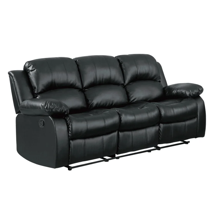 The sofa has a black bonded leather match with bi-cast vinyl. Has solid wood and plywood frame with metal reinforced seat.