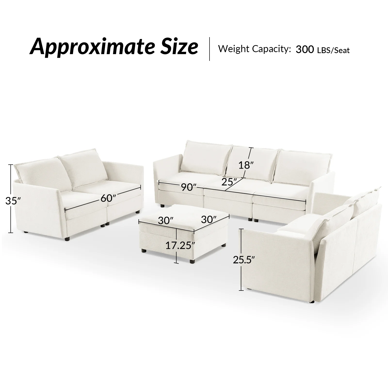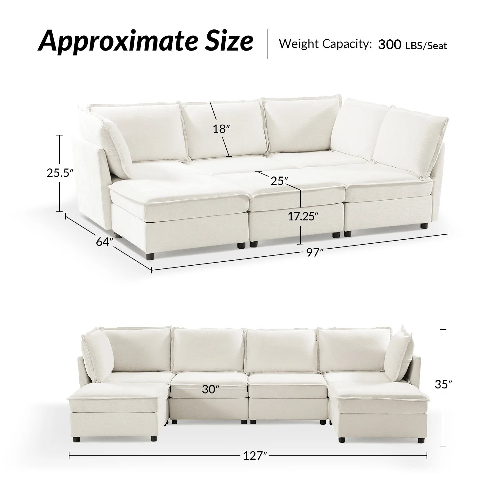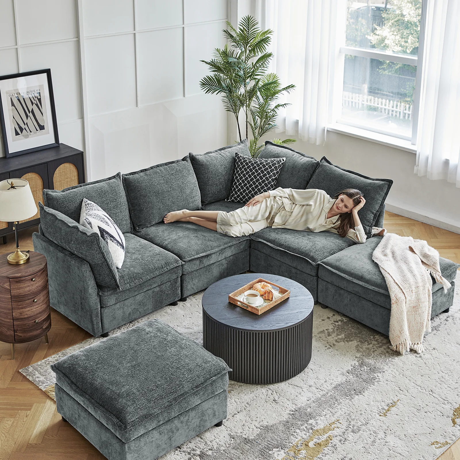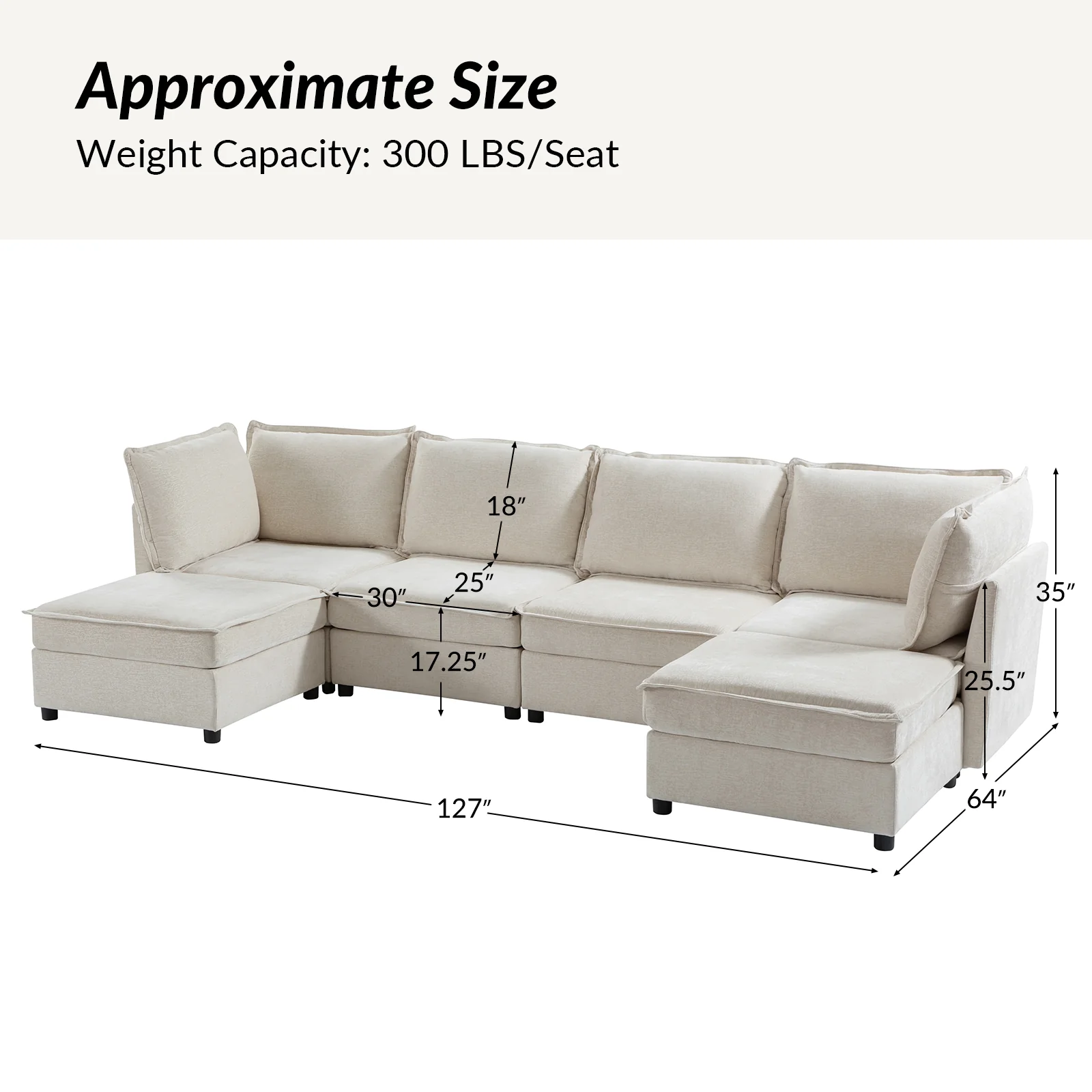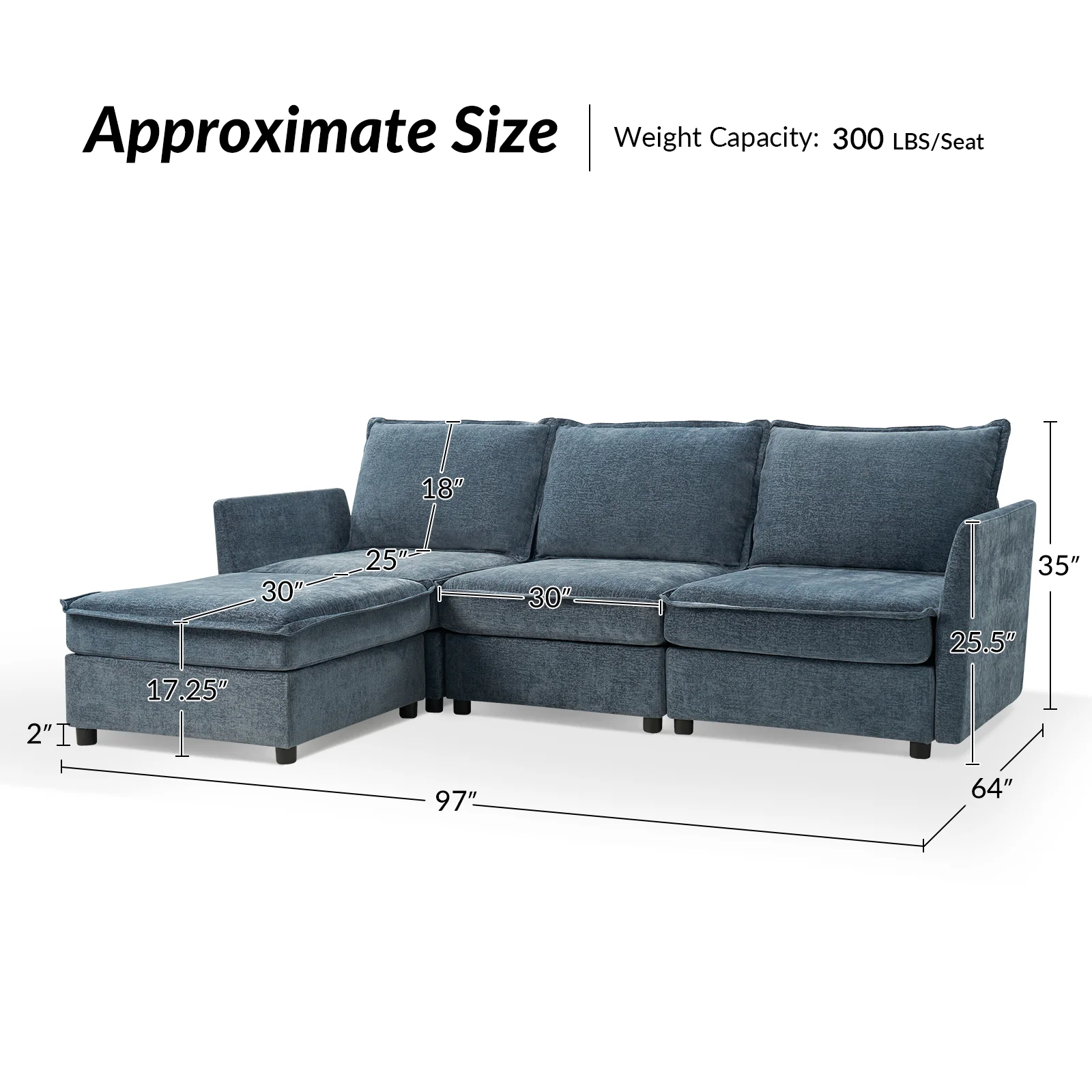 This modular sofa is designed for maximum comfort and versatility. Featuring 1.5x extra-wide seats, it caters specifically to larger individuals and expansive spaces. The soft cushions offer exceptional comfort. Hidden storage compartments under the seats help reduce clutter and provide easy access to everyday items. Its modular design allows you to rearrange the sections to create different living room layouts. Assembly is hassle-free with no tools required, and the sofa's segmented packaging ensures easy transportation. Additionally, the fabric covers are removable and washable, maintaining a fresh and clean look.