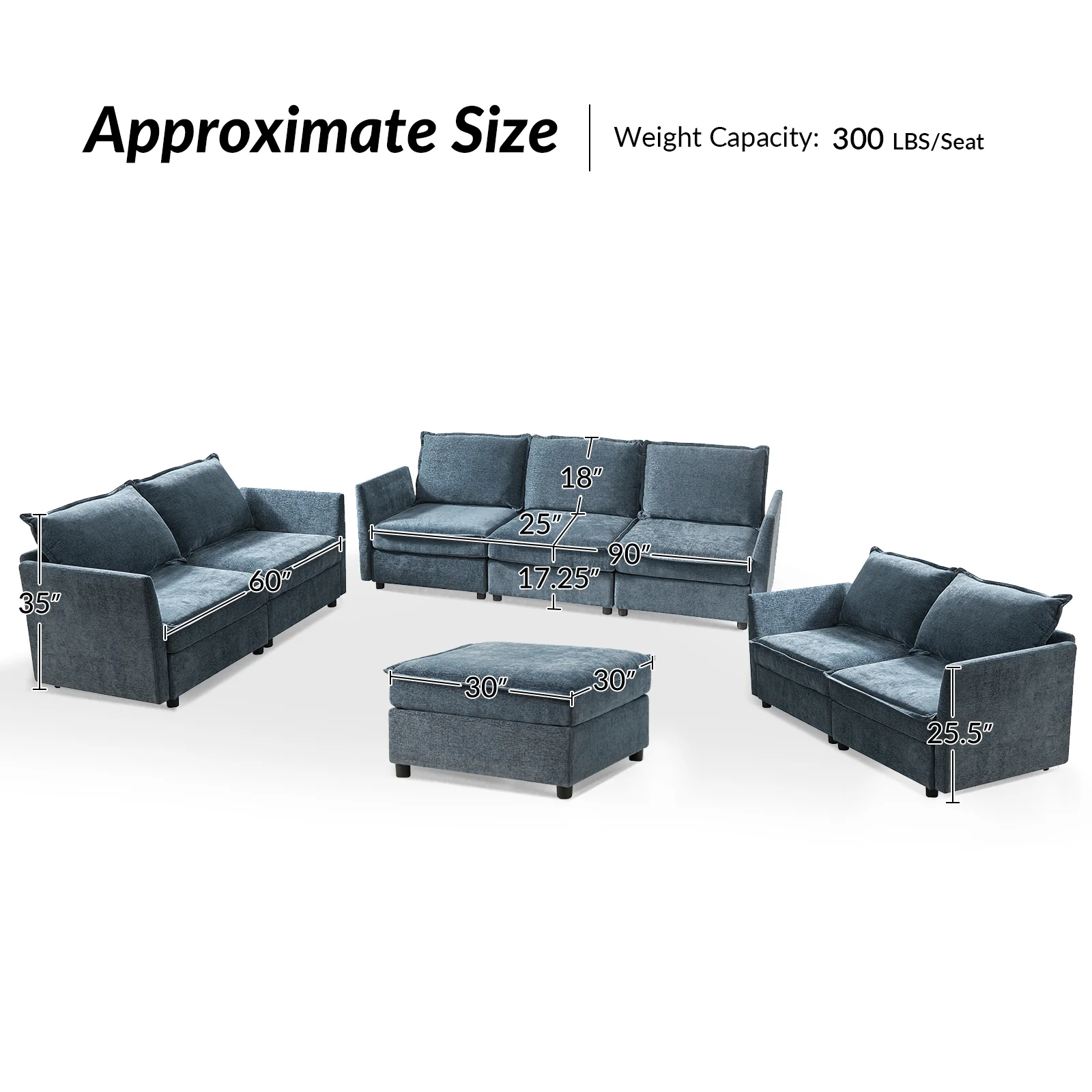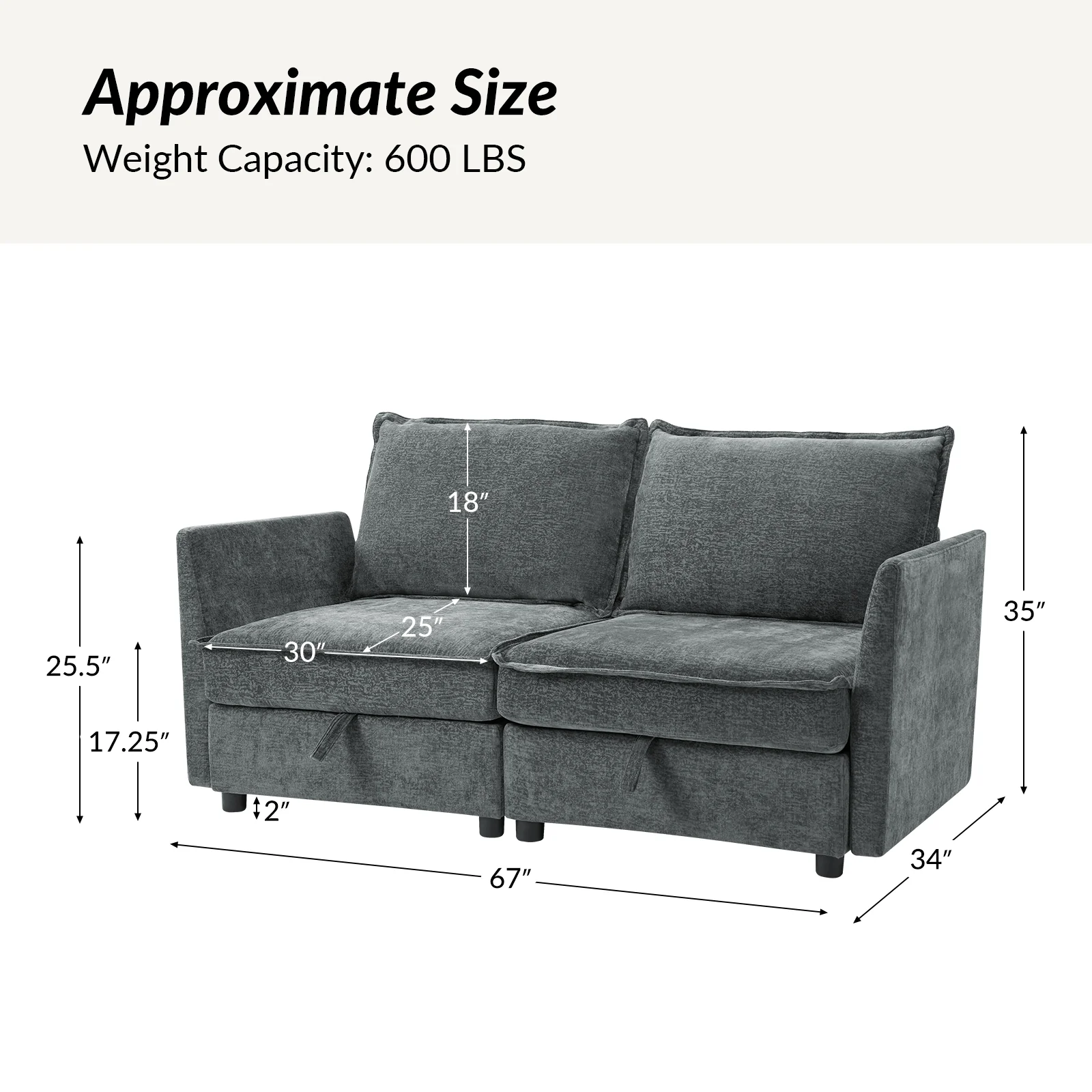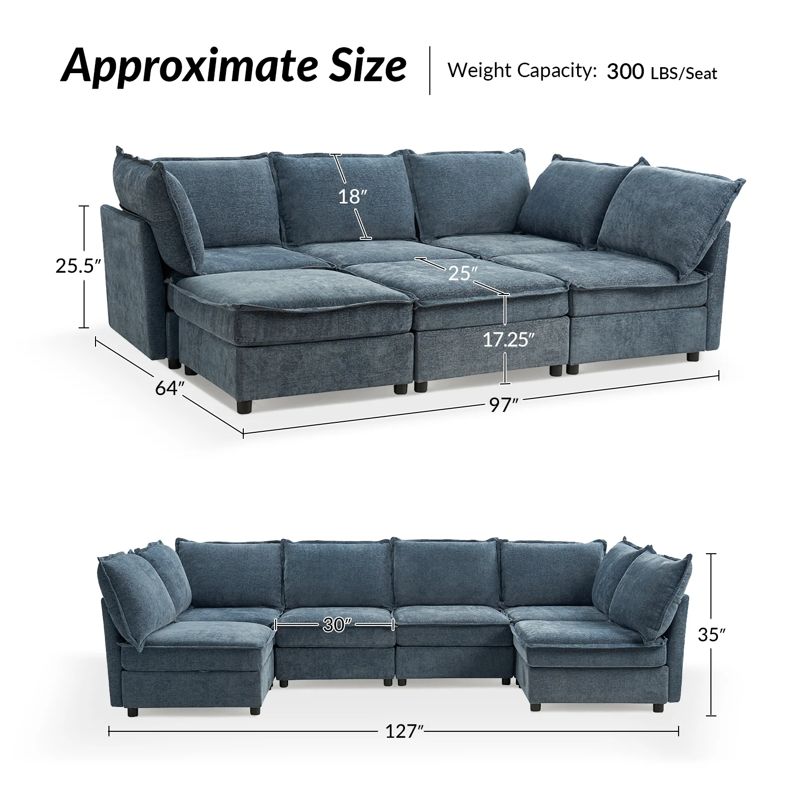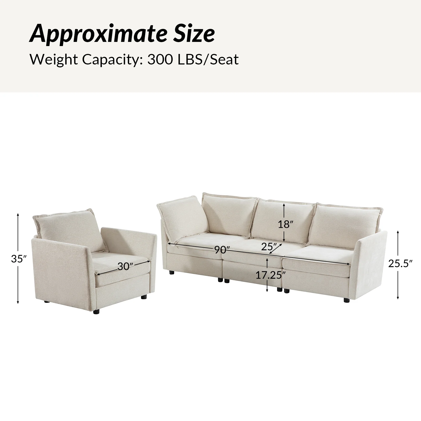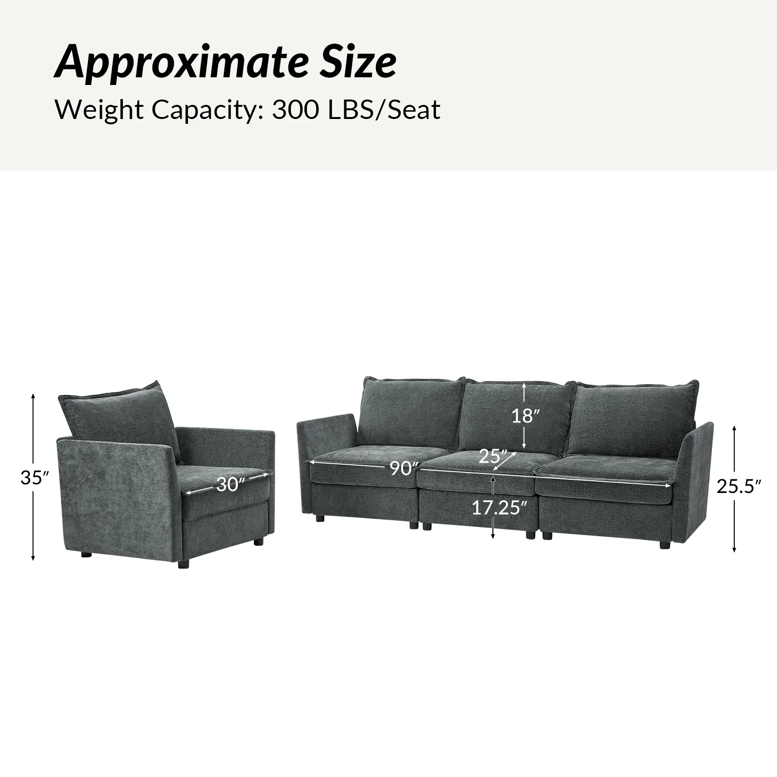 This modular sofa is designed for maximum comfort and versatility. Featuring 1.5x extra-wide seats, it caters specifically to larger individuals and expansive spaces. The soft cushions offer exceptional comfort. Hidden storage compartments under the seats help reduce clutter and provide easy access to everyday items. Its modular design allows you to rearrange the sections to create different living room layouts. Assembly is hassle-free with no tools required, and the sofa's segmented packaging ensures easy transportation. Additionally, the fabric covers are removable and washable, maintaining a fresh and clean look.