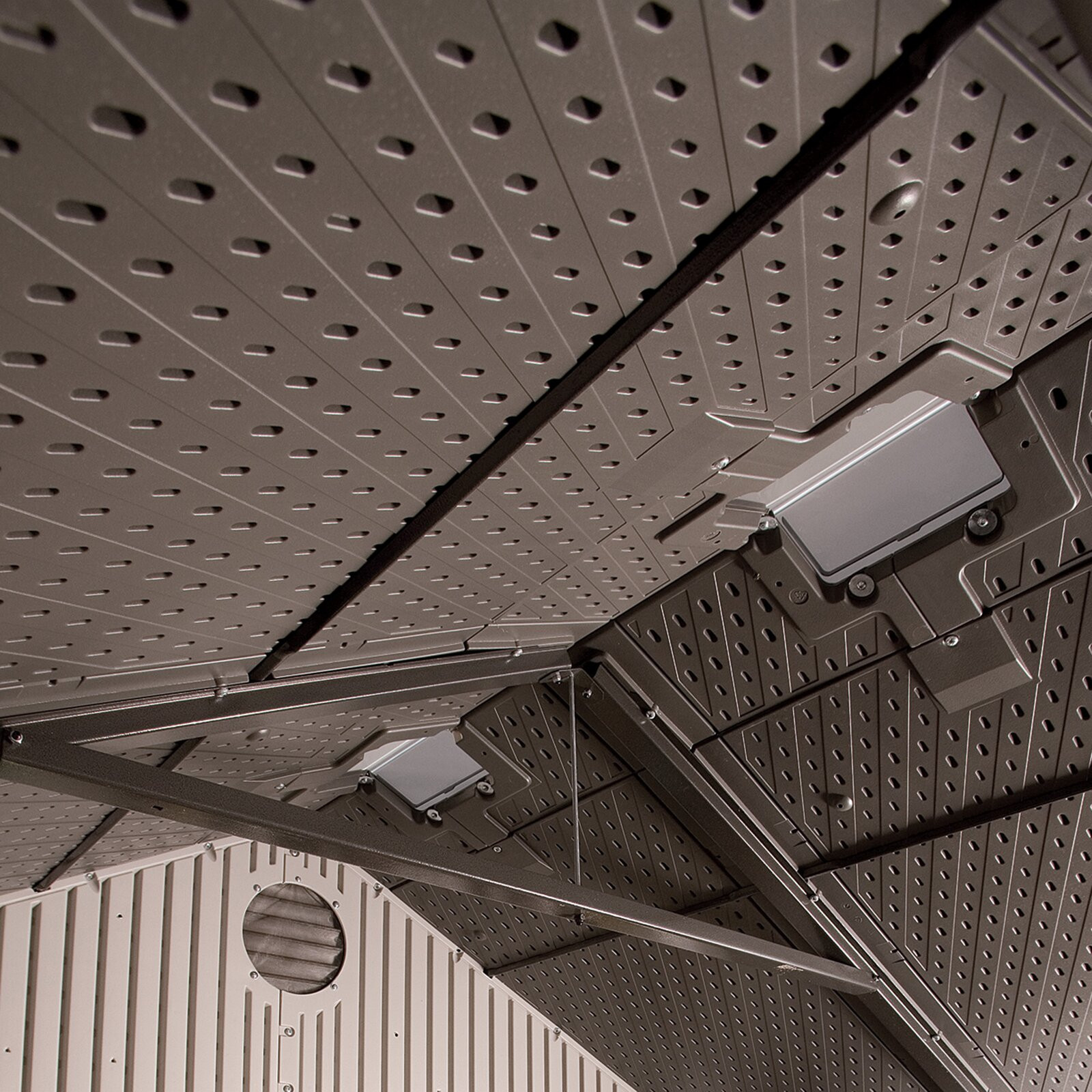 Lifetime's outdoor sheds combine quality materials with innovative design, offering a convenient storage solution that maximizes storage potential. Combined with superior value and the ability to withstand nature's day-to-day abuse. Double-wall, steel-reinforced construction and steel roof trusses make the sheds structurally sound, so they won't buckle during storms or dent during everyday use.