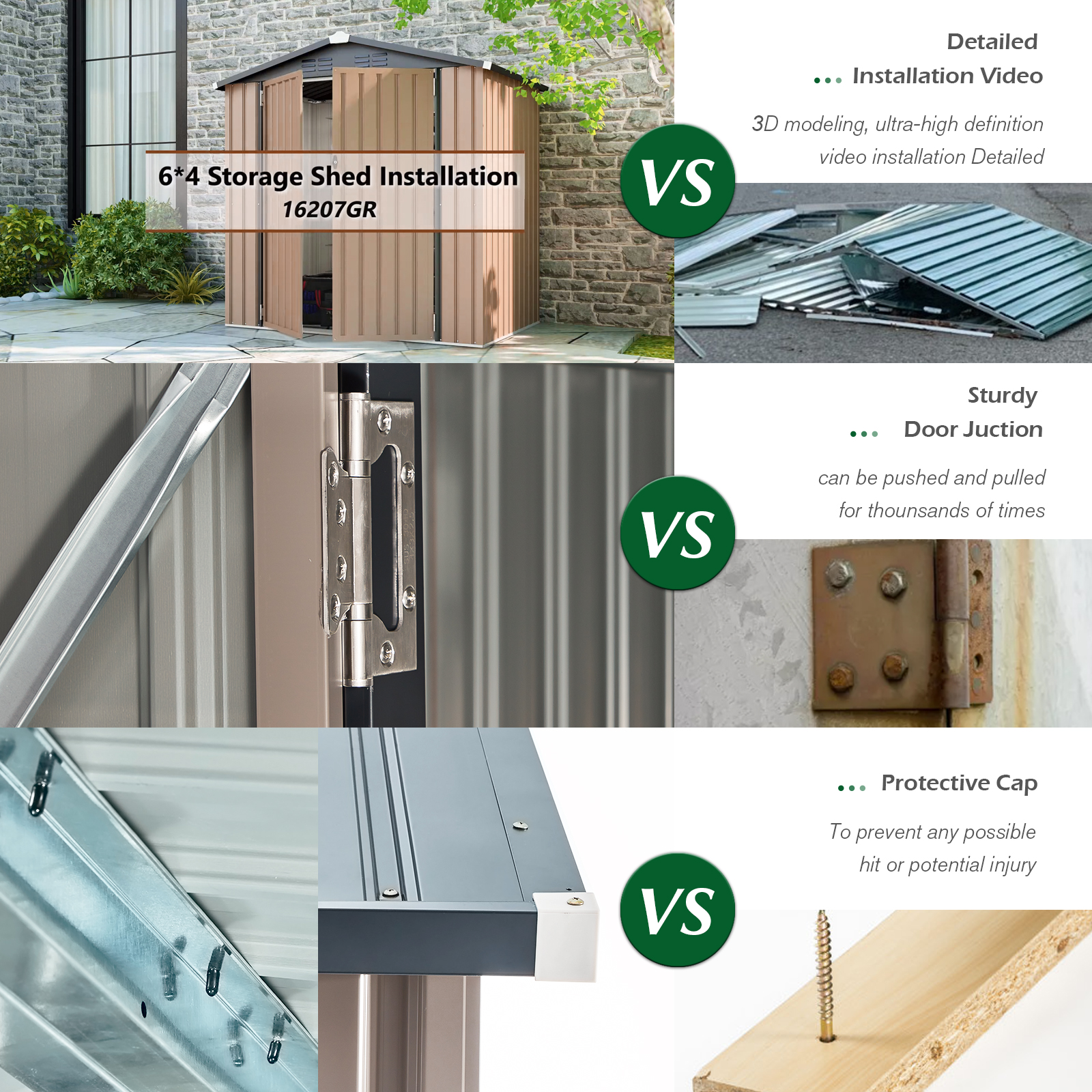 - Professional Wrapping: The shed comes with 2 boxes, with all hardware inside, and we provide a pair of gloves to protect your hand while assembly, the instruction videos are deliberately provided for a much easier assembly.