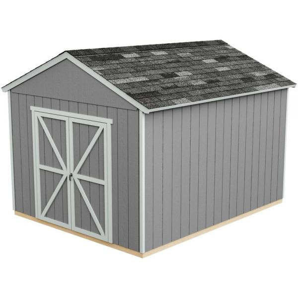 The Handy Home Rookwood 10 ft. x 12 ft. Do-It-Yourself Wood Shed Kit combines modern design with exceptional versatility. This multi-purpose, 10 ft. x 12 ft. blueprint features premium, 2 in. x 4 in. wood framing for ground-to-peak strength and treated, engineered wood siding to resist fungal decay and wood-destroying insects. Over-sized, pre-hung 5 ft. 4 in. W X 6 ft. h double doors are mounted on full-length galvanized steel hinges. The Rookwood shed boasts impressive, 7 ft. H side walls and a 9 ft. to 6 in. peak. and a robust 873 cu. ft. of storage capacity, providing that extra space you need to store all your outdoor yard tools, lawn gear or hobby and lifestyle items. This wooden shed also includes a complete wood floor with treated wood floor framing and OSB wood floor decking. The Handy Home Rookwood 10 ft. x 12 ft. Ready-to-Assemble, Pre-cut Wood Shed Kit also features Adaptive Door Location. Install your doors on eave or gable side to achieve your desired look. A premium, rust-resistant, keyed locking handle is included for improved security. This Do-It-Yourself wood storage shed kit can be easily assembled with a hammer, drill/drive, screwdriver, tape measure, level and stepladder and always wear safety glasses. Illustrated instructions, hardware and limited material warranty included. Paint and shingles not included (both sold separately).