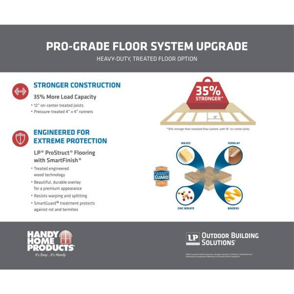 - Newly upgraded LP pro-struct decking system and treated 12 in. of floor frame is included with installation