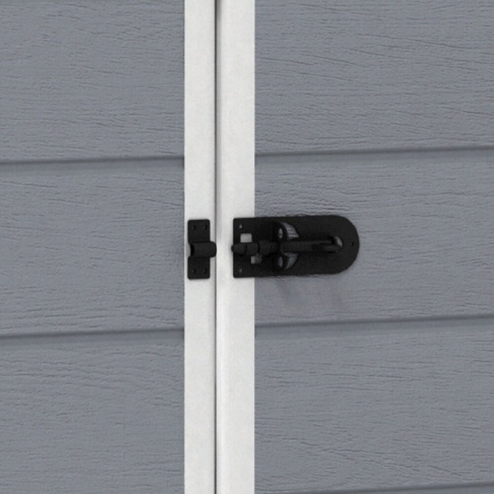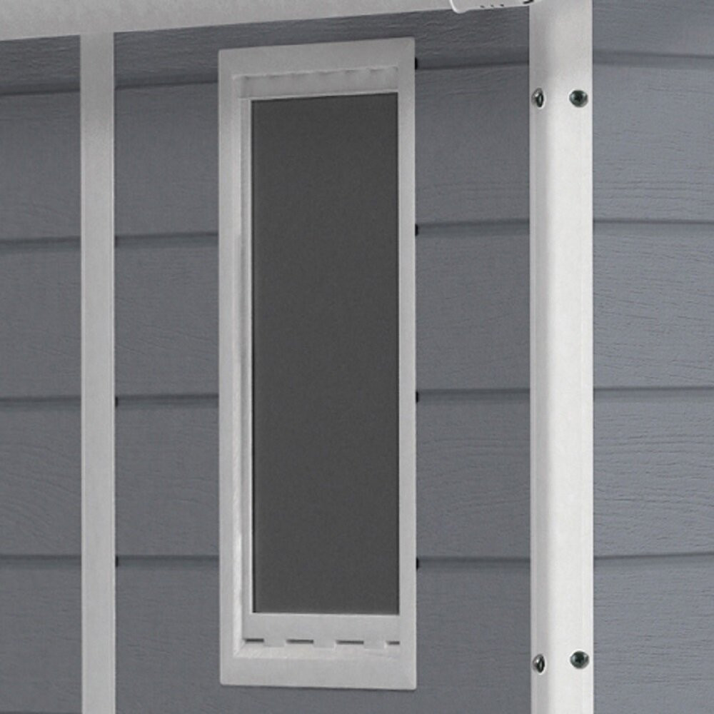 This storage shed makes your garden and garage clutter-free and provides the perfect storage space for all your needs. This shed is a practical addition to your home and keeps your tools and essentials well-organized. The shed is made from premium quality material that offers long-lasting performance. The sturdy gable design provides excellent durability and lends a traditional touch to the outdoor decor. The gray and white enhances its overall appeal and complements most homes. It has one fixed window and an opening at the top for ventilation and better airflow to move the chemical smells. The storage unit is ideal for storing most tools and offers maximum storage in minimal space. This tool shed has one front panel door, which opens wide for better accessibility. The sturdy roof and floor offer versatile placement options. It is ideal for gardens, lawns, and backyards. The shed won??t rot, peel or dent that retains its look for a longer time.