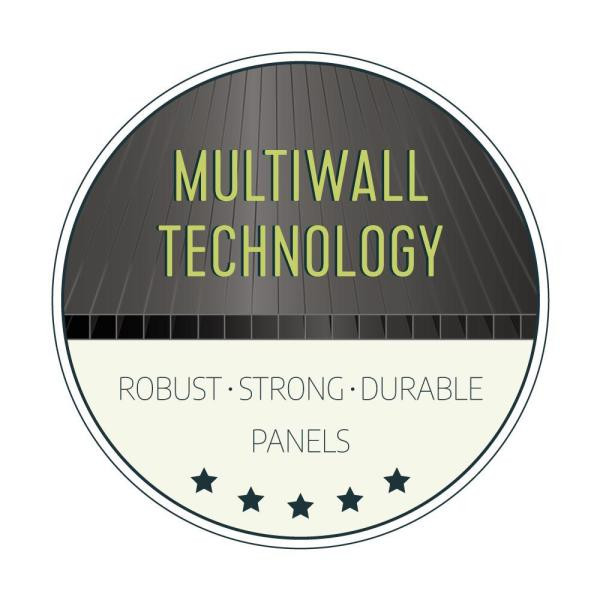 • 100% UV protected, 10 mm multiwall fortified polycarbonate panels maintain their integrity