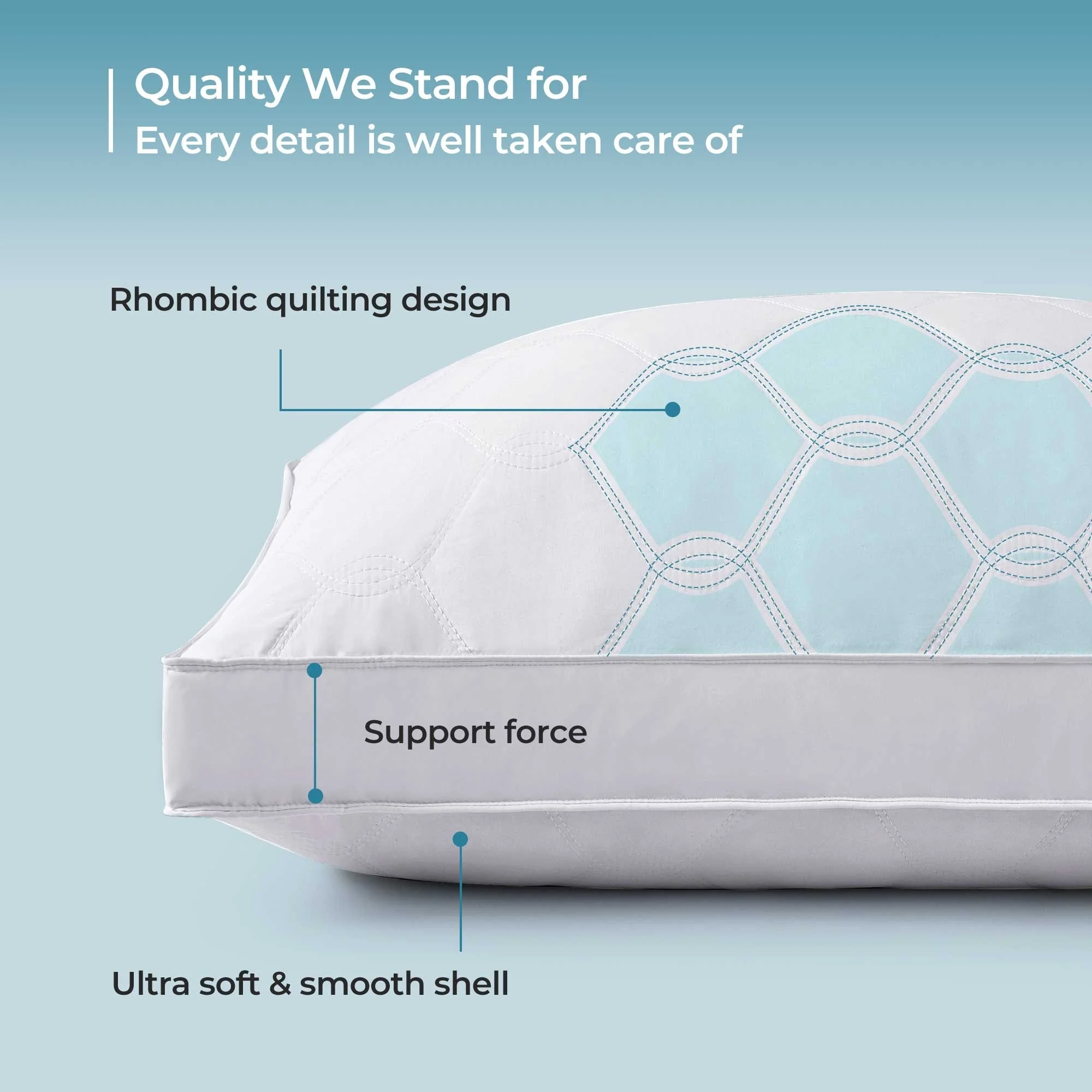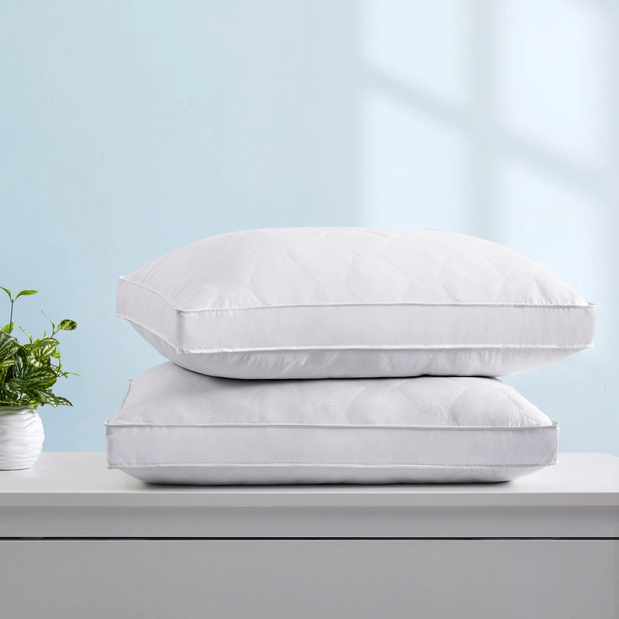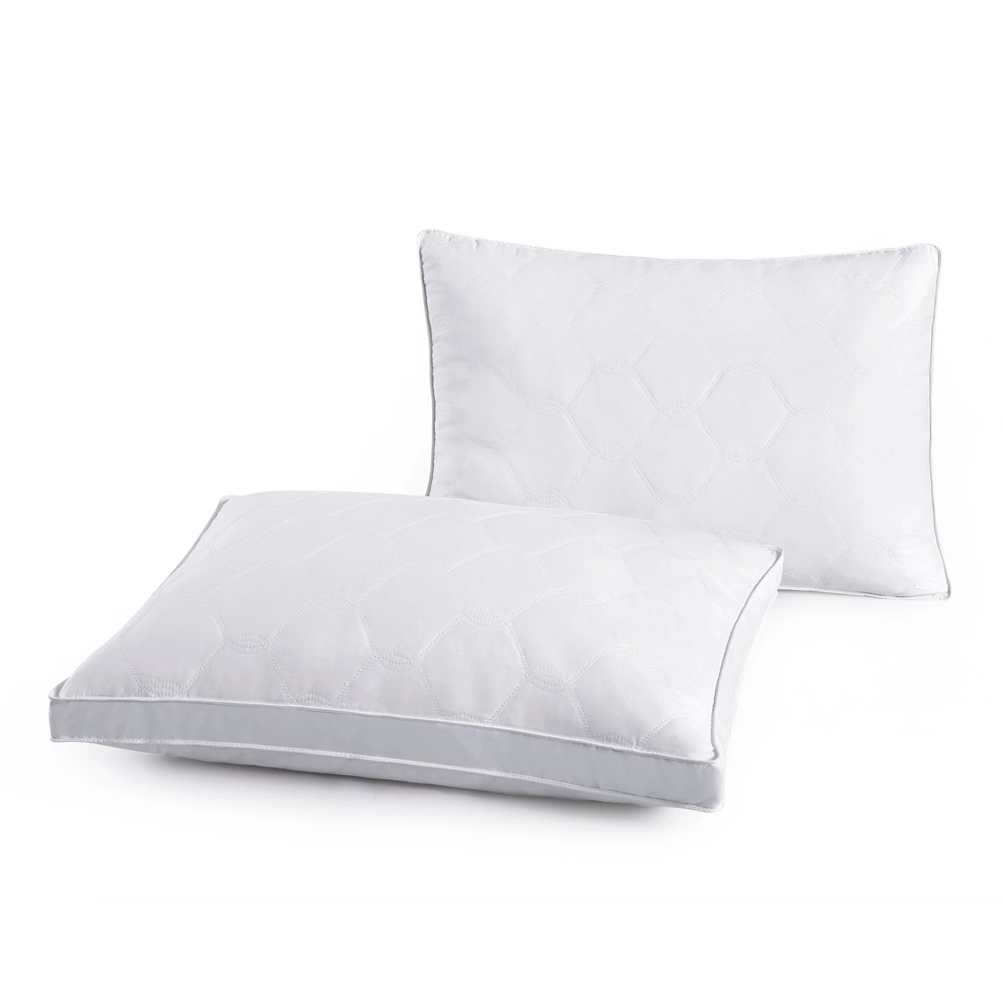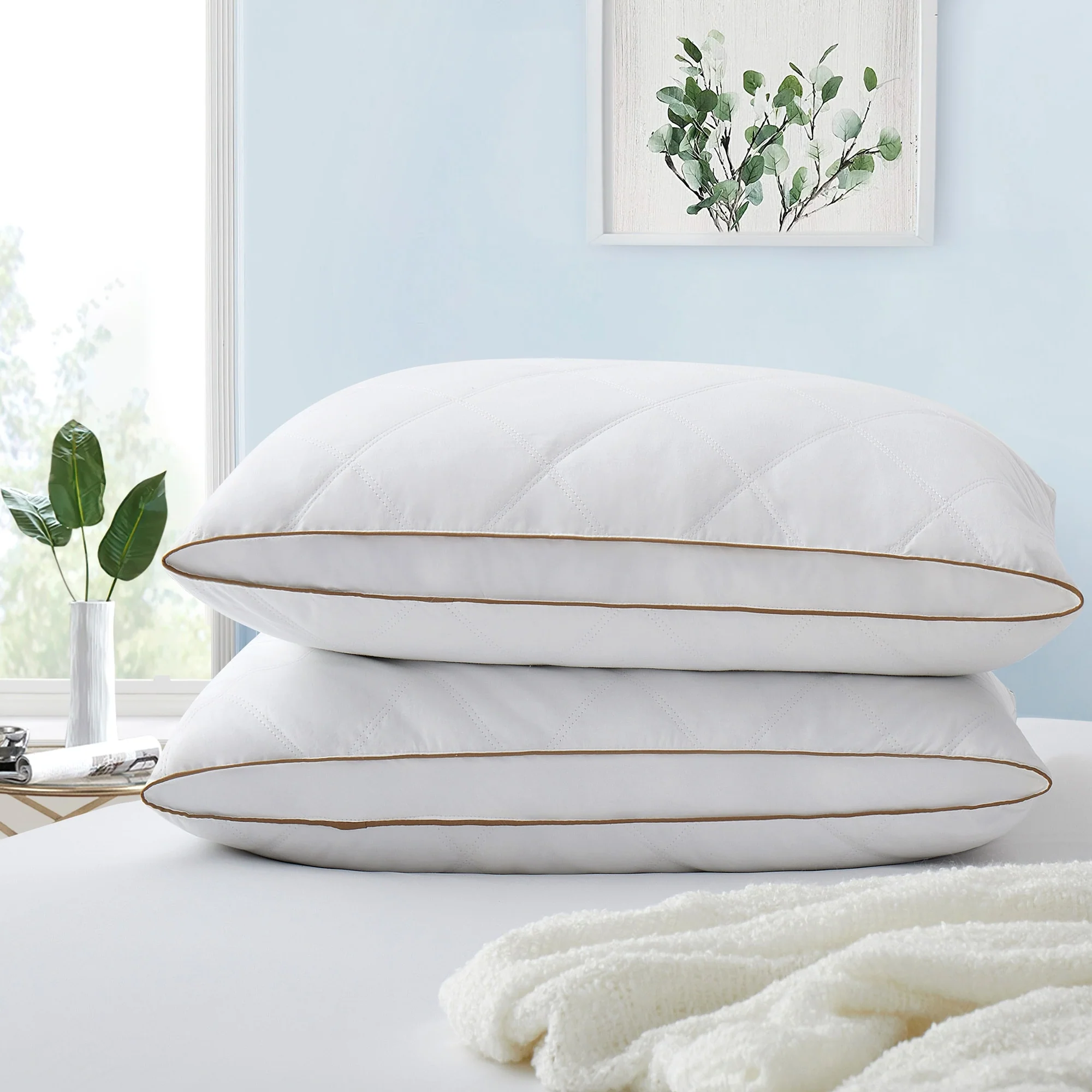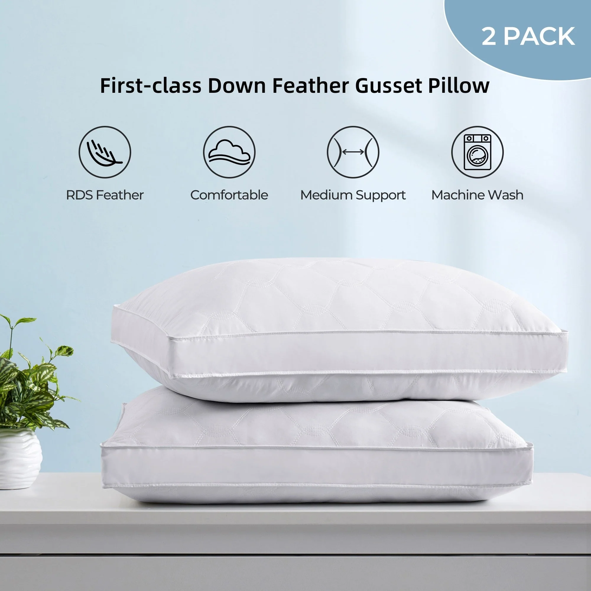 2 Pack Premium Quilted Gusset Goose Feather and Down Bed Pillows for Side & Back Sleepers - White