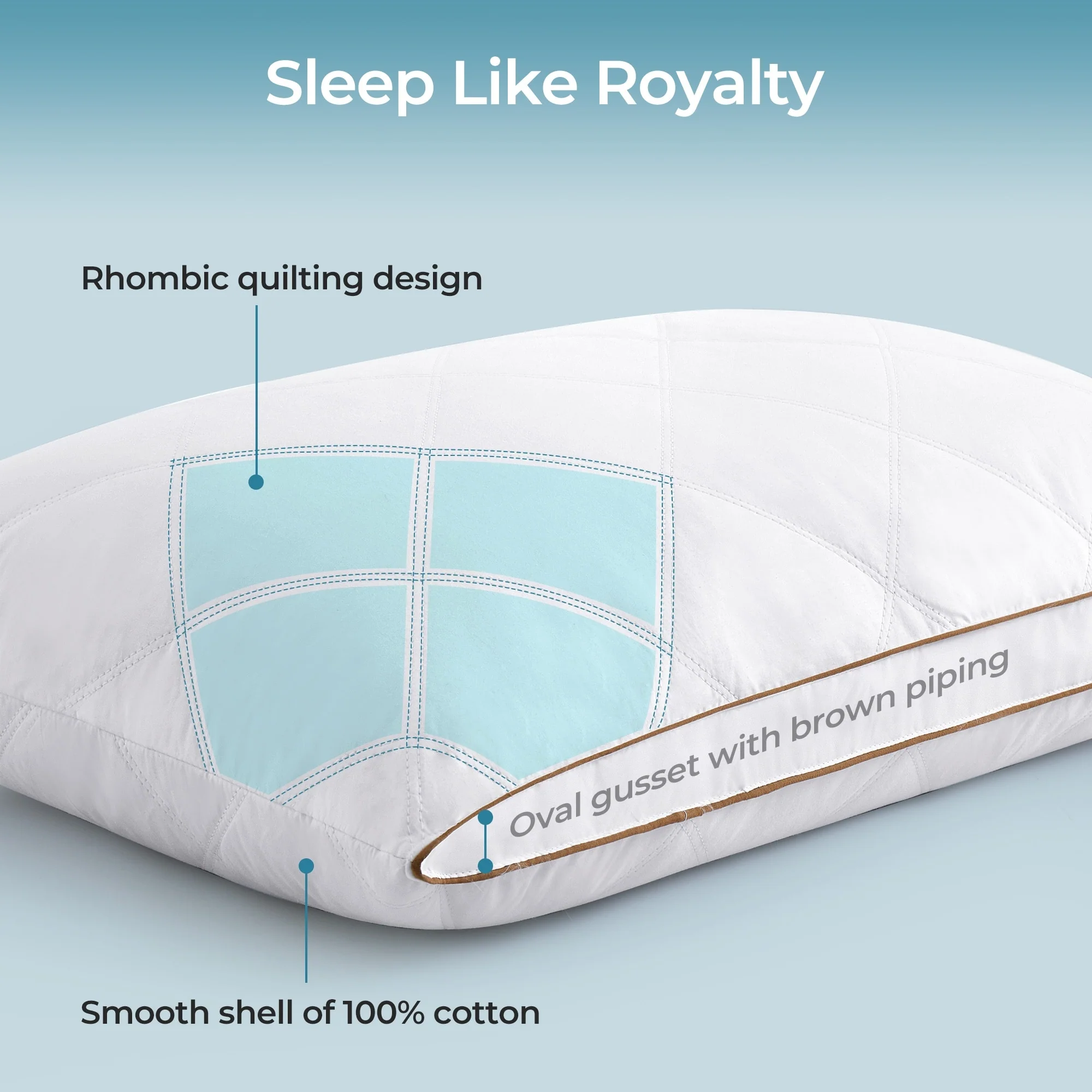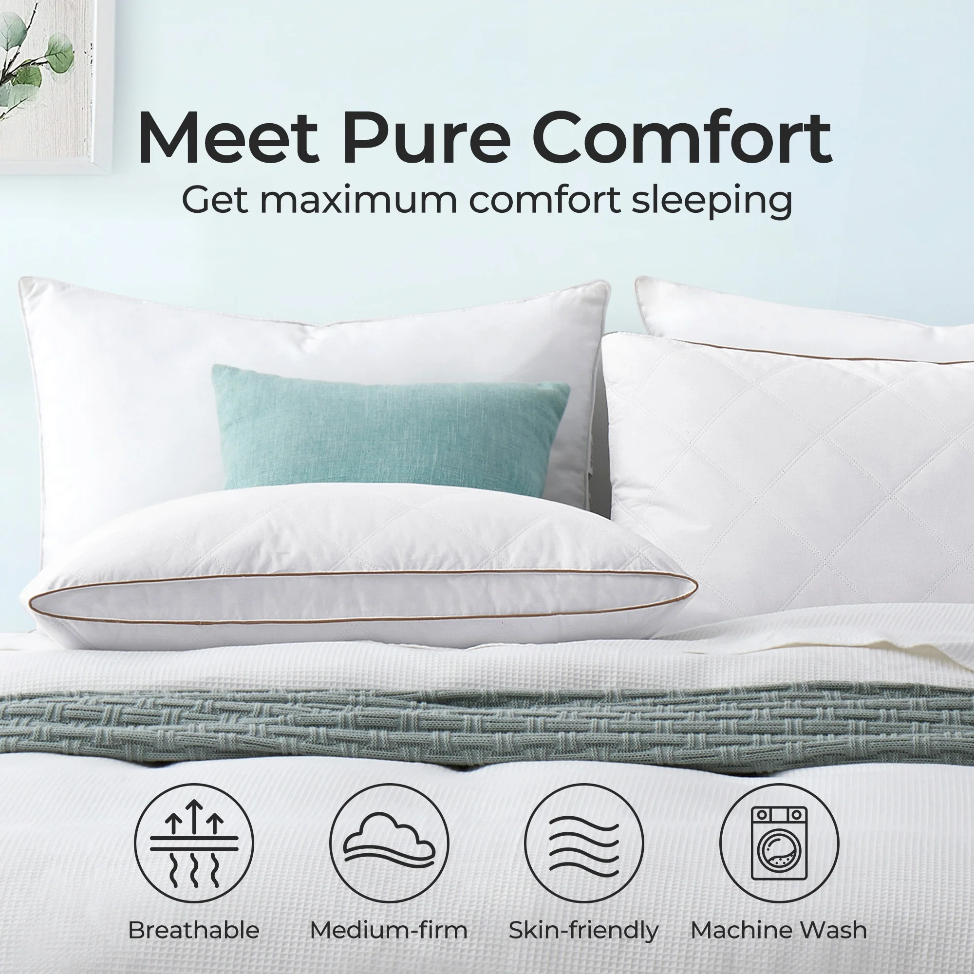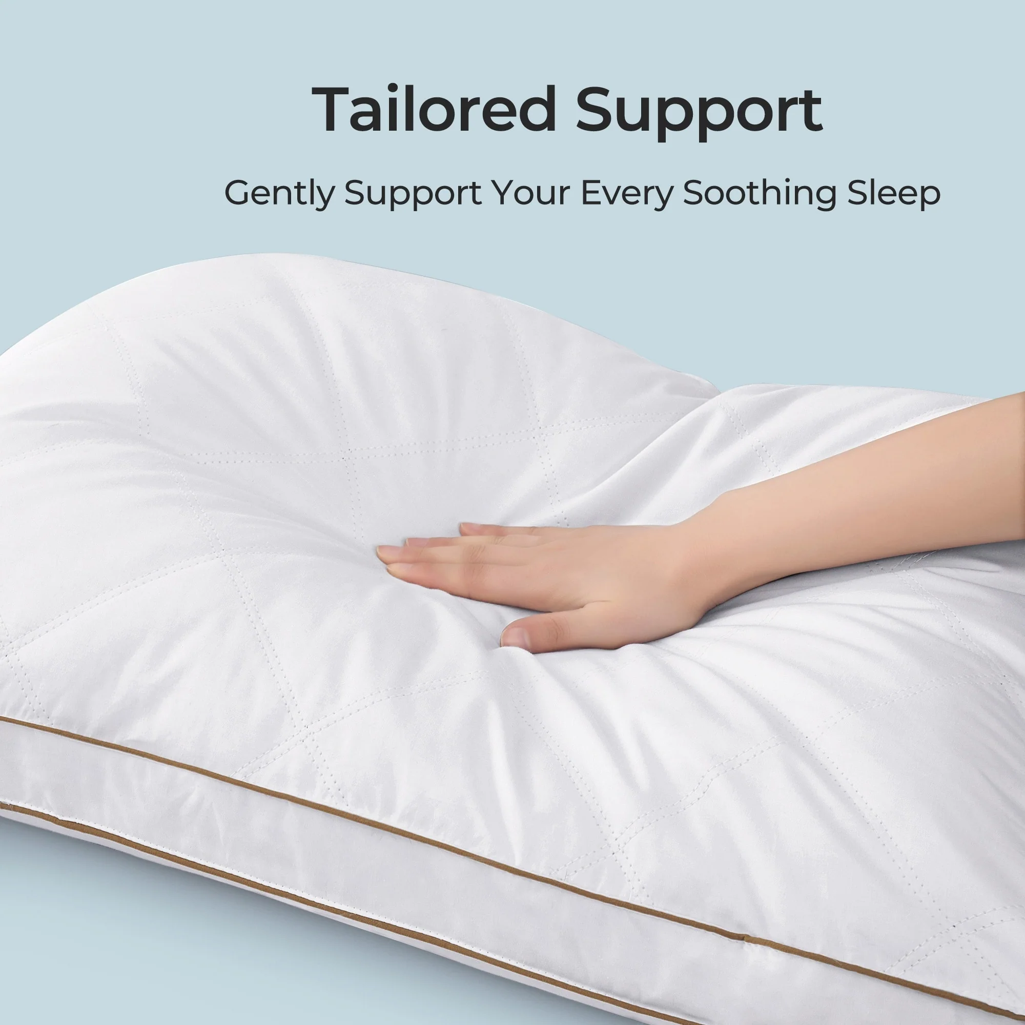 • 2 Pack Premium Quilted Gusset Goose Feather and Down Bed Pillows for Side & Back Sleepers - White