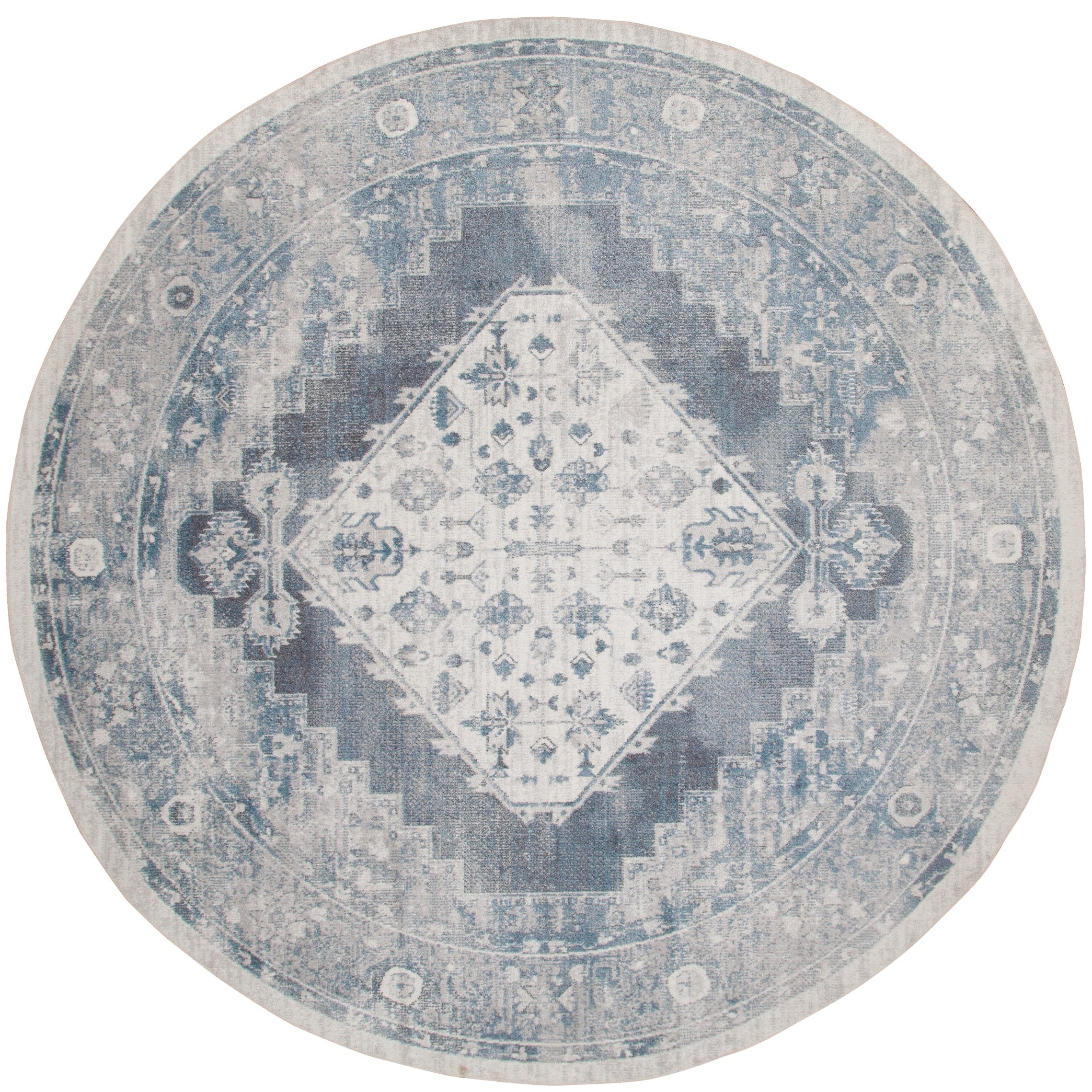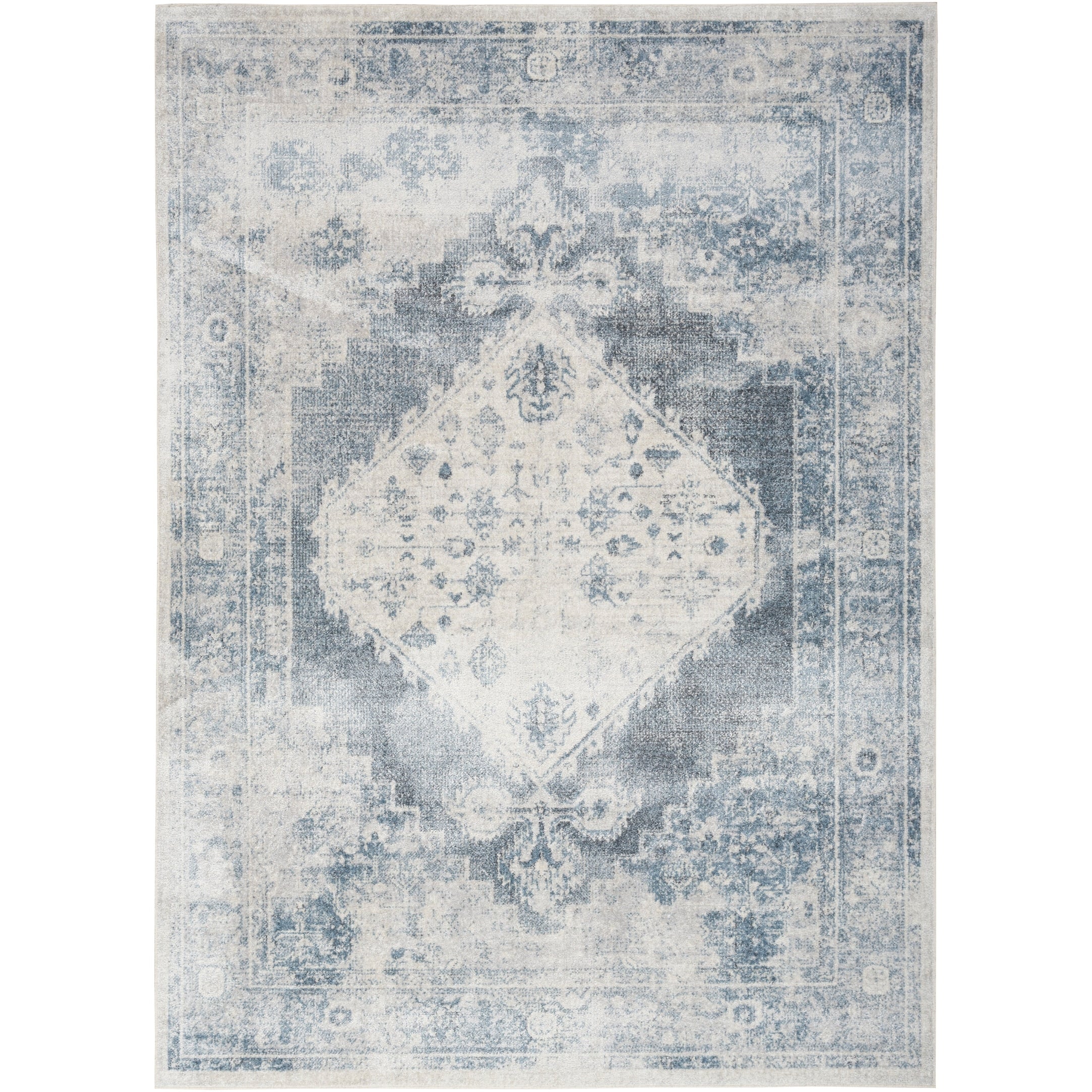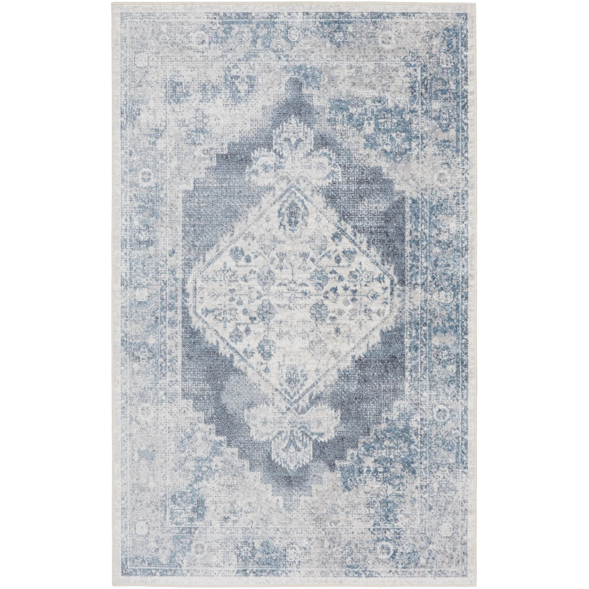 Vintage meets modern with this Persian rug from the Astra Machine Washable Collection Featuring an artfully faded floral medallion pattern in blue, the classic design is enhanced with a brilliant sheen that shifts in tone under different lighting This vintage-inspired rug is machine-washable for fuss-free cleaning, making it an ideal addition to busy households with pets and kids.