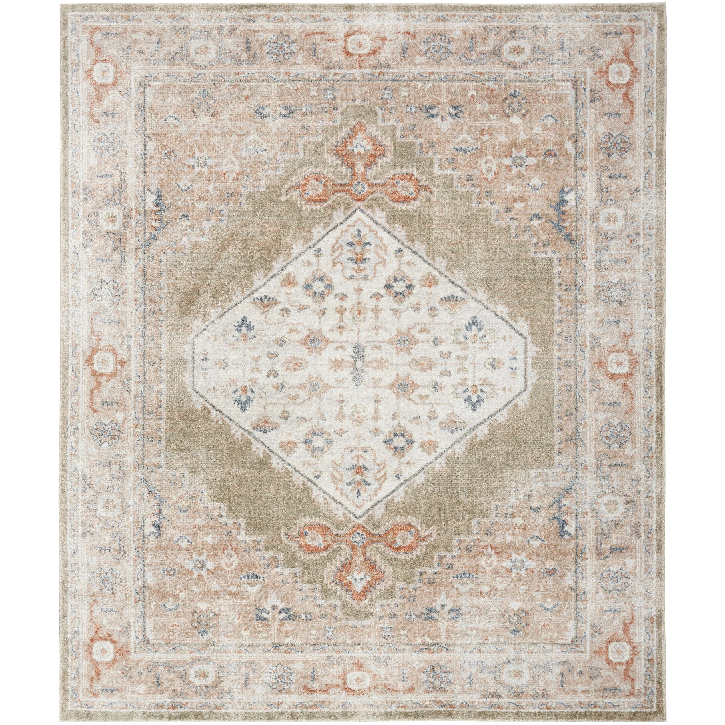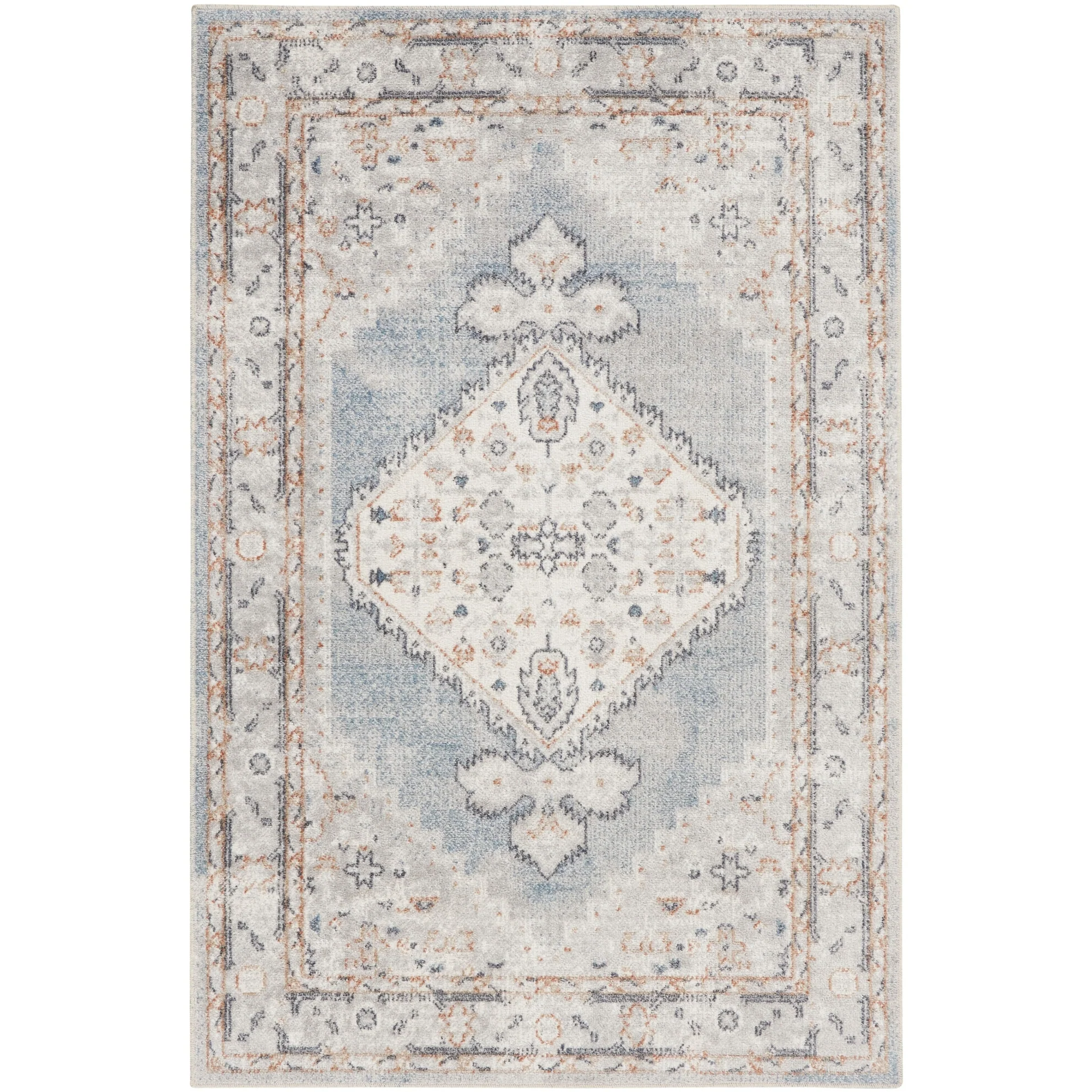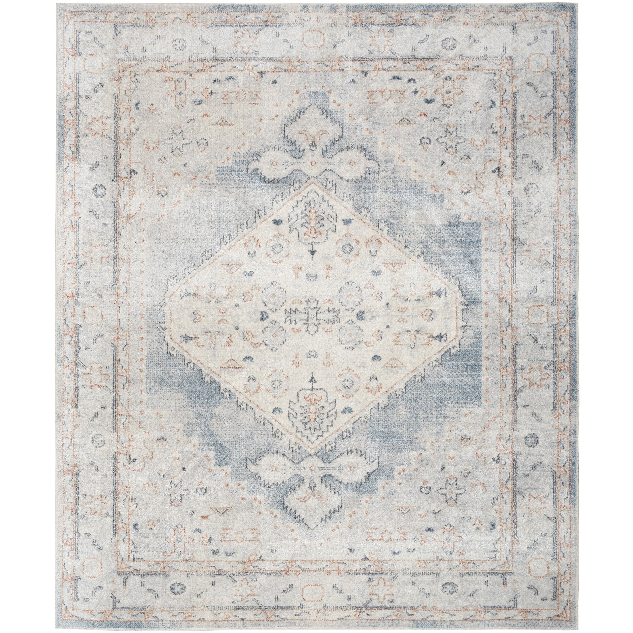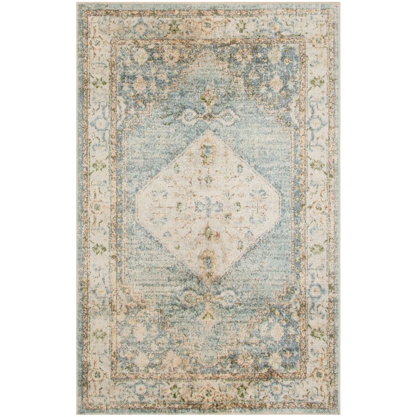Vintage meets modern with this Persian rug from the Astra Machine Washable Collection Featuring an artfully faded floral medallion pattern in blue, the classic design is enhanced with a brilliant sheen that shifts in tone under different lighting This vintage-inspired rug is machine-washable for fuss-free cleaning, making it an ideal addition to busy households with pets and kids.