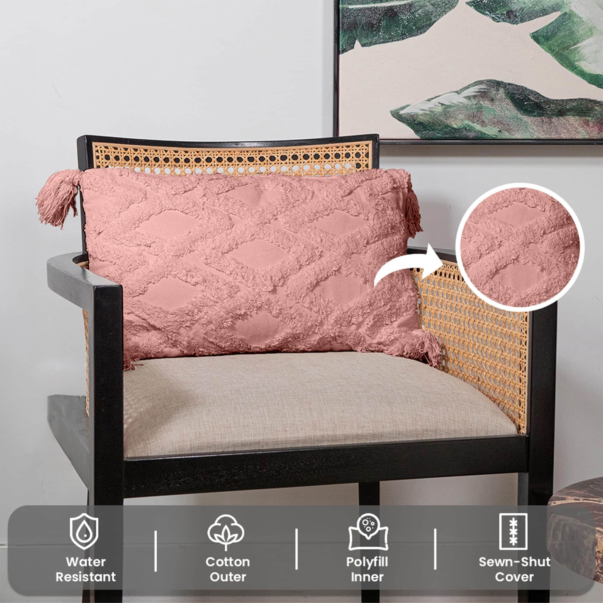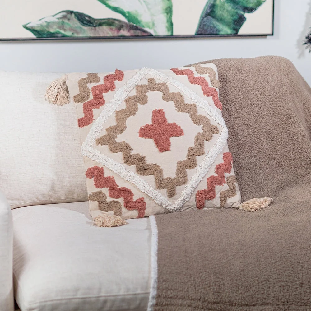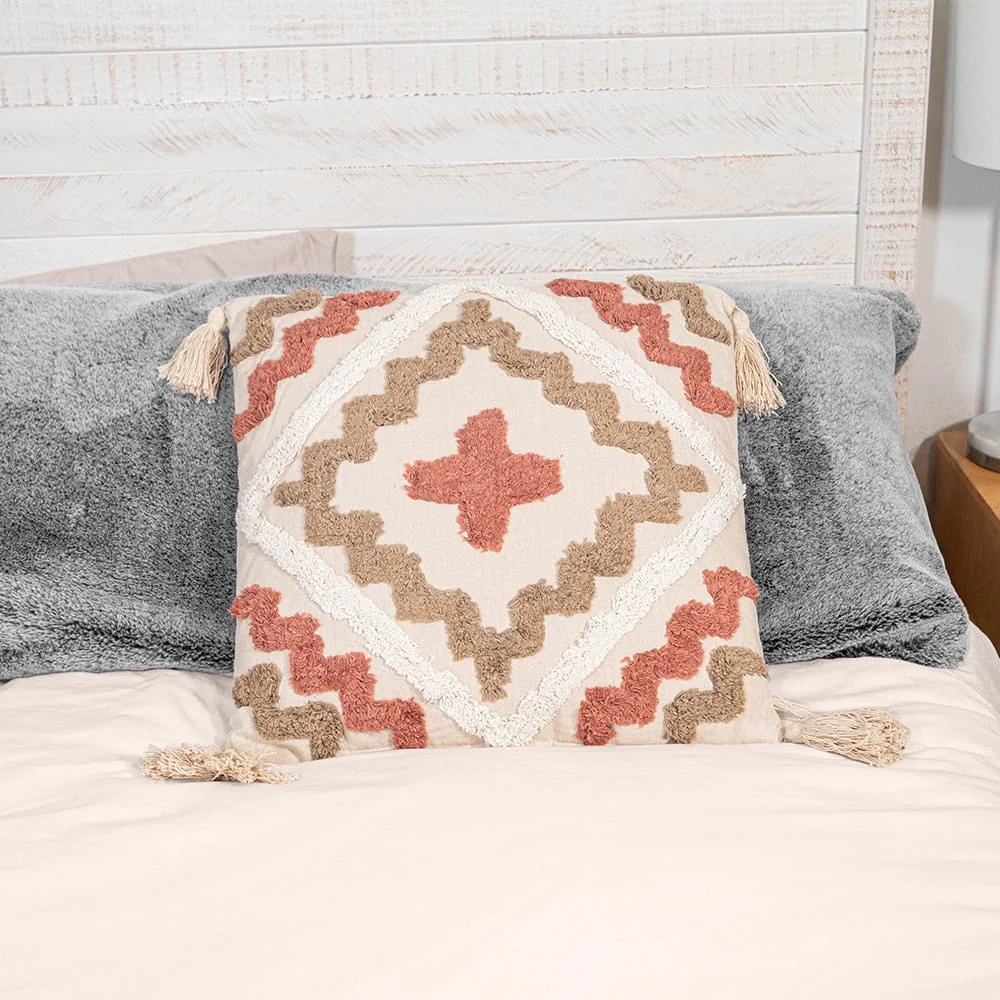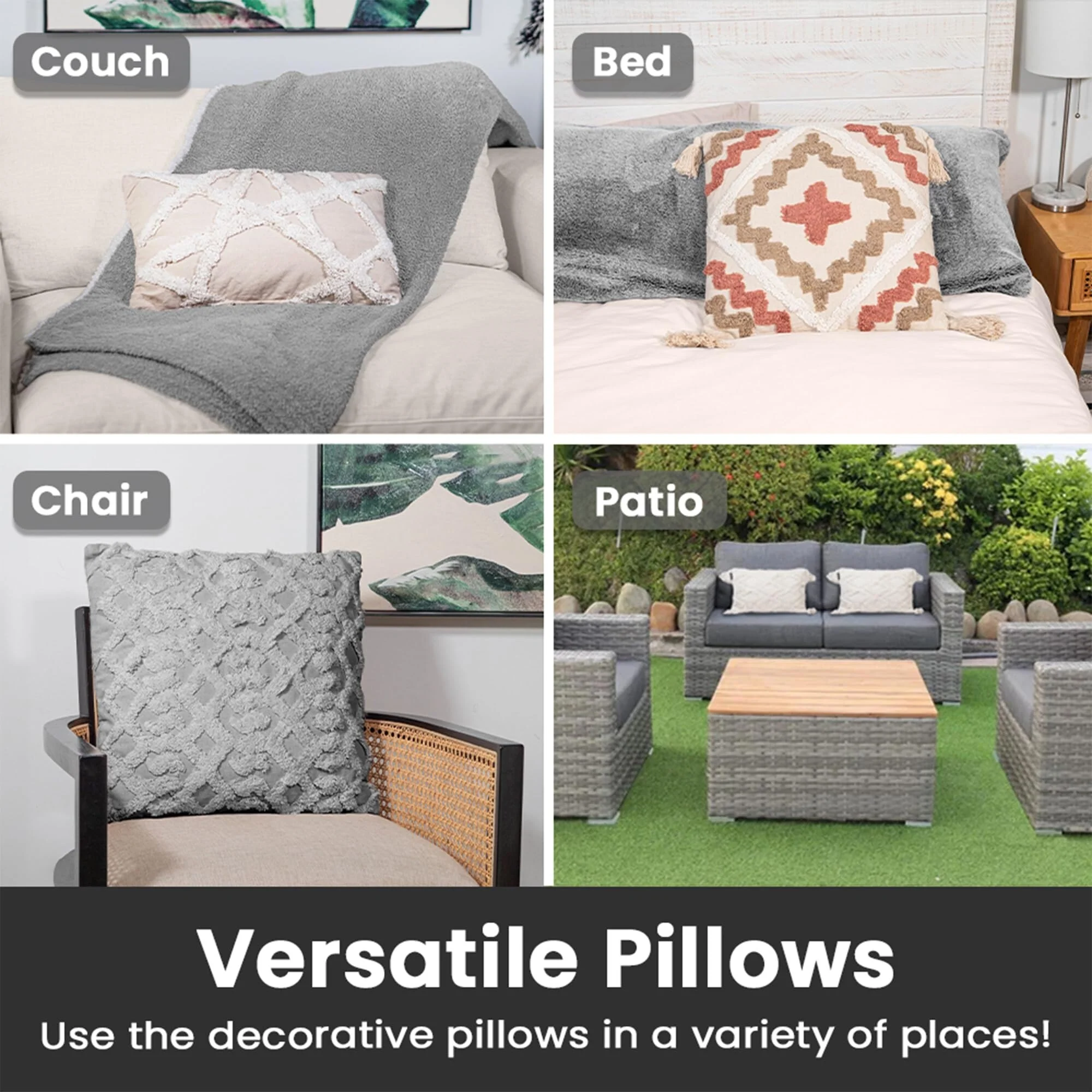 Elevate your living room or bedroom with our premium decorative throw pillow which combines aesthetic appeal with cozy functionality. Whether you're seeking a boho-inspired touch, or a farmhouse feel, our wide range of designs and colors will suit your decor perfectly. Add a touch of comfort and tranquility to your space with the throw pillow. These versatile accents effortlessly blend with any color scheme, providing a crisp and clean look. Crafted with attention to detail, our decorative pillows feature high-quality cotton cover and poly fill that are soft to the touch and built to last. The macrame pillows bring a unique texture and bohemian charm to your sofa or bed and add an extra layer of sophistication and transform your space into a cozy oasis of style. Designed to complement various decor styles, these throw pillows add warmth and elegance to any setting. The couch pillow creates a soothing atmosphere, making the décor cushion perfect for relaxation and lounging. Enhance your seating comfort with our lumbar pillow decorative. Created specifically for supporting your lower back, this pillow offers both relief and style. Its ergonomic design and plush filling make it an excellent addition to your living room or office chair, providing optimal comfort during long hours of sitting. Our decor pillows are carefully curated to cater to your personal style and preferences. From square pillows to cute and charming designs, our collection has something for everyone. These decorative pillows effortlessly transform your space into a cozy haven while expressing your unique taste. With a variety of patterns and colors, you can effortlessly create a fresh look in your living room or bedroom. Indulge in the luxurious comfort and aesthetic charm of our decorative pillows and experience the transformation they bring to your home.