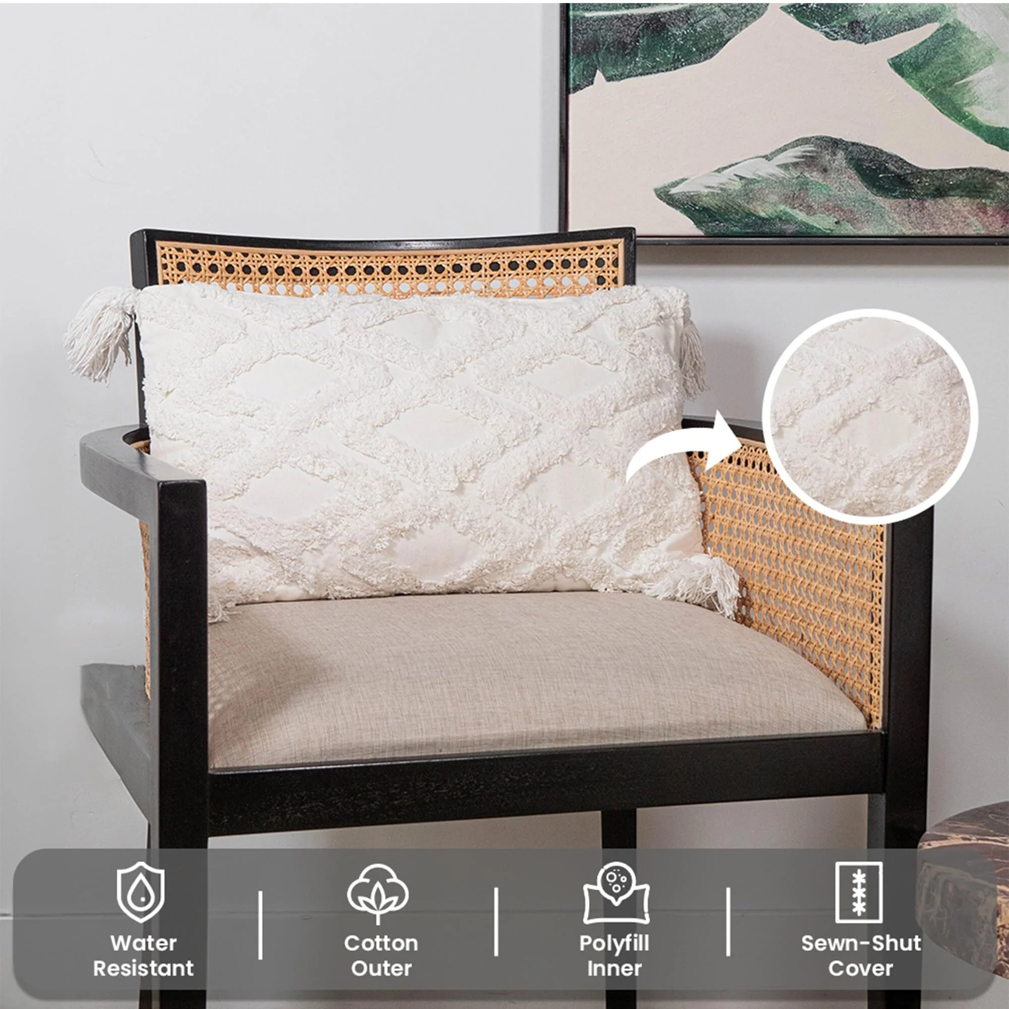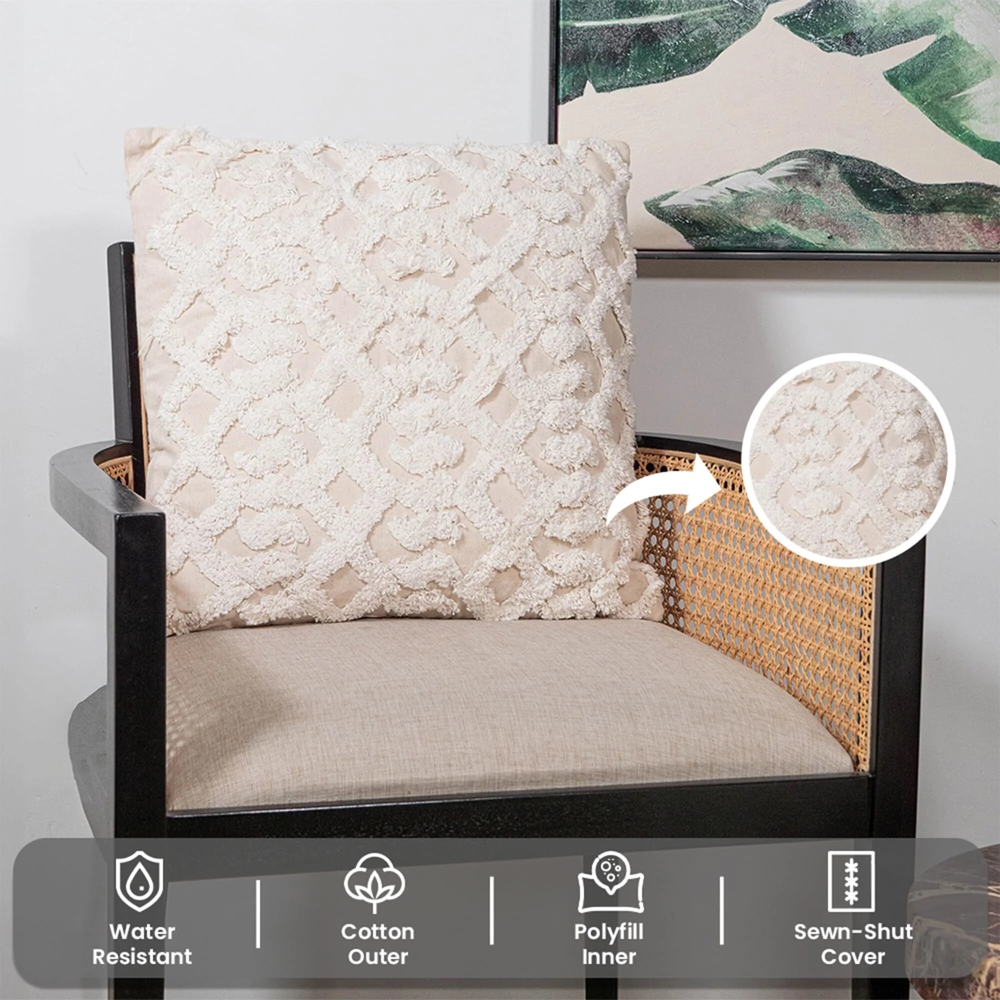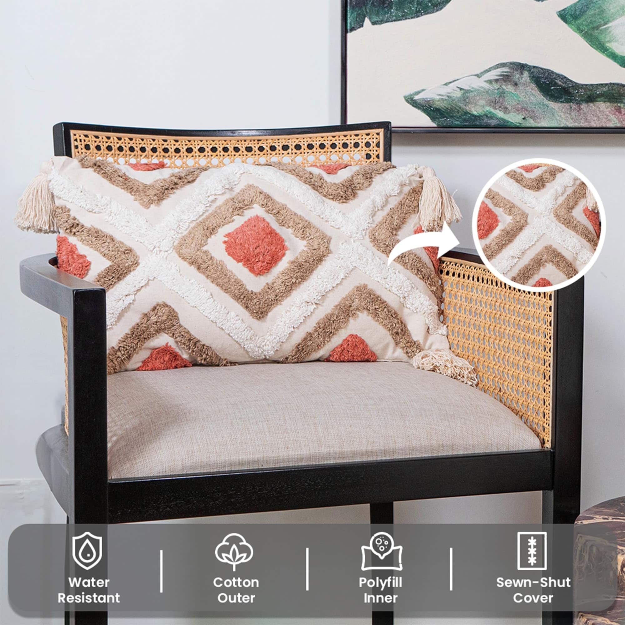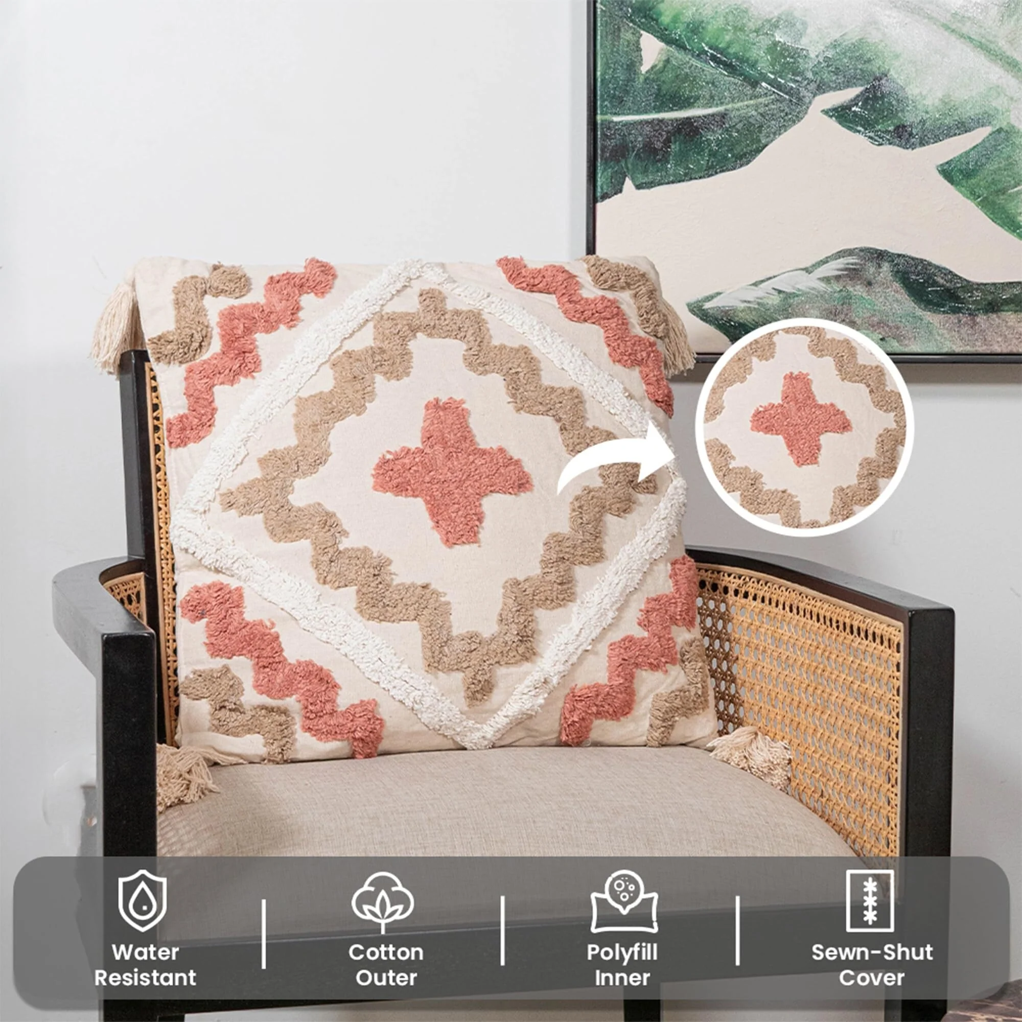 Elevate your living room or bedroom with our premium decorative throw pillow which combines aesthetic appeal with cozy functionality. Whether you're seeking a boho-inspired touch, or a farmhouse feel, our wide range of designs and colors will suit your decor perfectly. Add a touch of comfort and tranquility to your space with the throw pillow. These versatile accents effortlessly blend with any color scheme, providing a crisp and clean look. Crafted with attention to detail, our decorative pillows feature high-quality cotton cover and poly fill that are soft to the touch and built to last. The macrame pillows bring a unique texture and bohemian charm to your sofa or bed and add an extra layer of sophistication and transform your space into a cozy oasis of style. Designed to complement various decor styles, these throw pillows add warmth and elegance to any setting. The couch pillow creates a soothing atmosphere, making the décor cushion perfect for relaxation and lounging. Enhance your seating comfort with our lumbar pillow decorative. Created specifically for supporting your lower back, this pillow offers both relief and style. Its ergonomic design and plush filling make it an excellent addition to your living room or office chair, providing optimal comfort during long hours of sitting. Our decor pillows are carefully curated to cater to your personal style and preferences. From square pillows to cute and charming designs, our collection has something for everyone. These decorative pillows effortlessly transform your space into a cozy haven while expressing your unique taste. With a variety of patterns and colors, you can effortlessly create a fresh look in your living room or bedroom. Indulge in the luxurious comfort and aesthetic charm of our decorative pillows and experience the transformation they bring to your home.