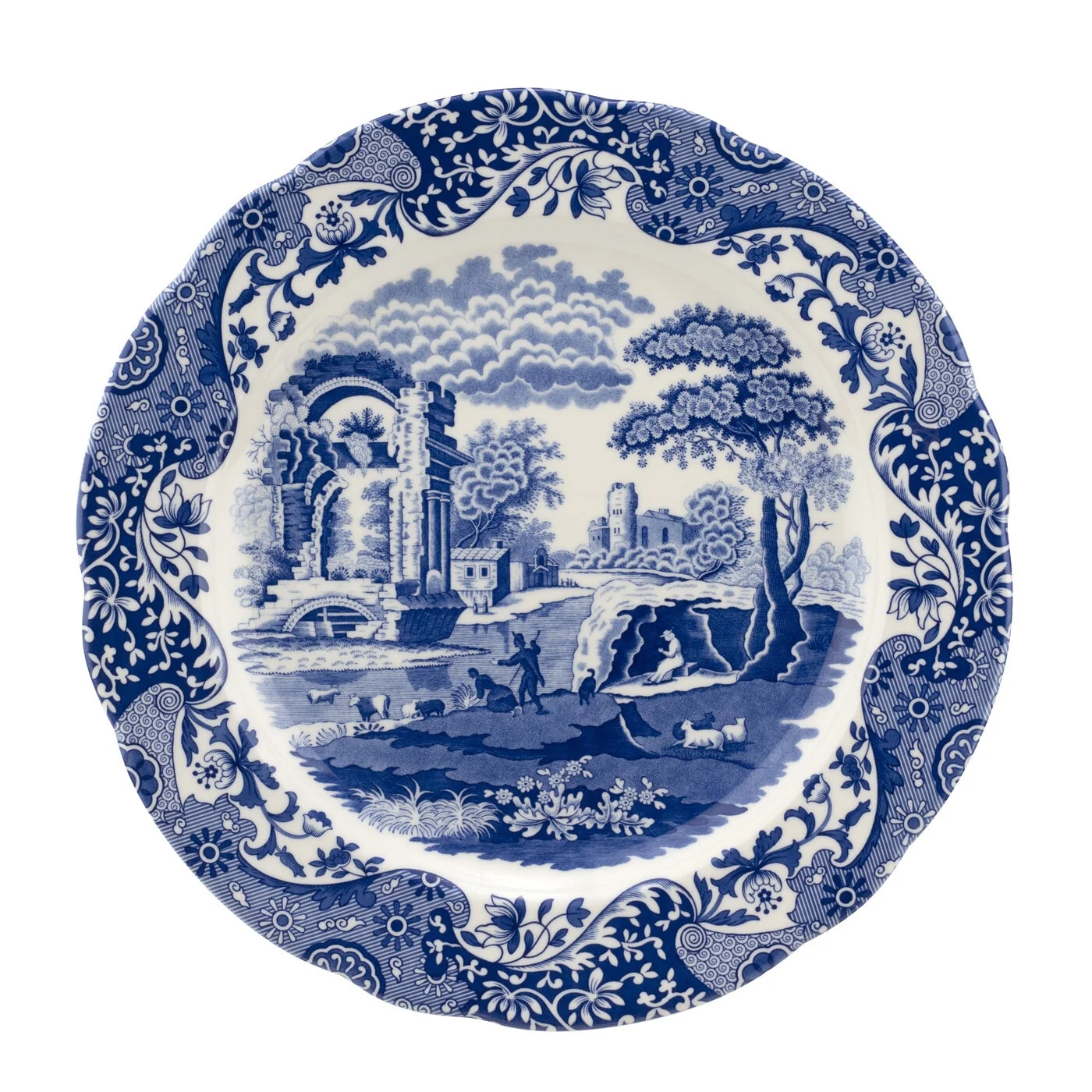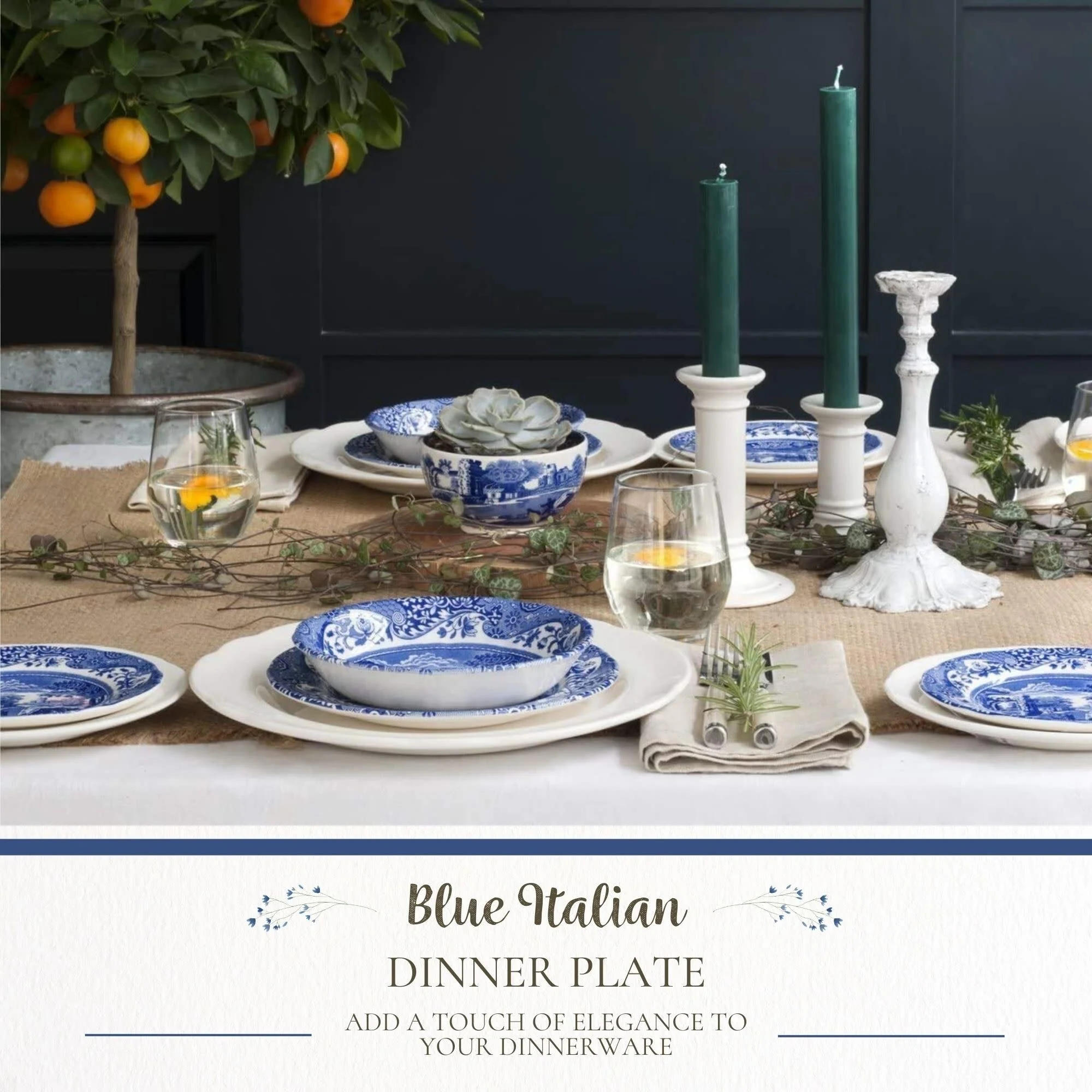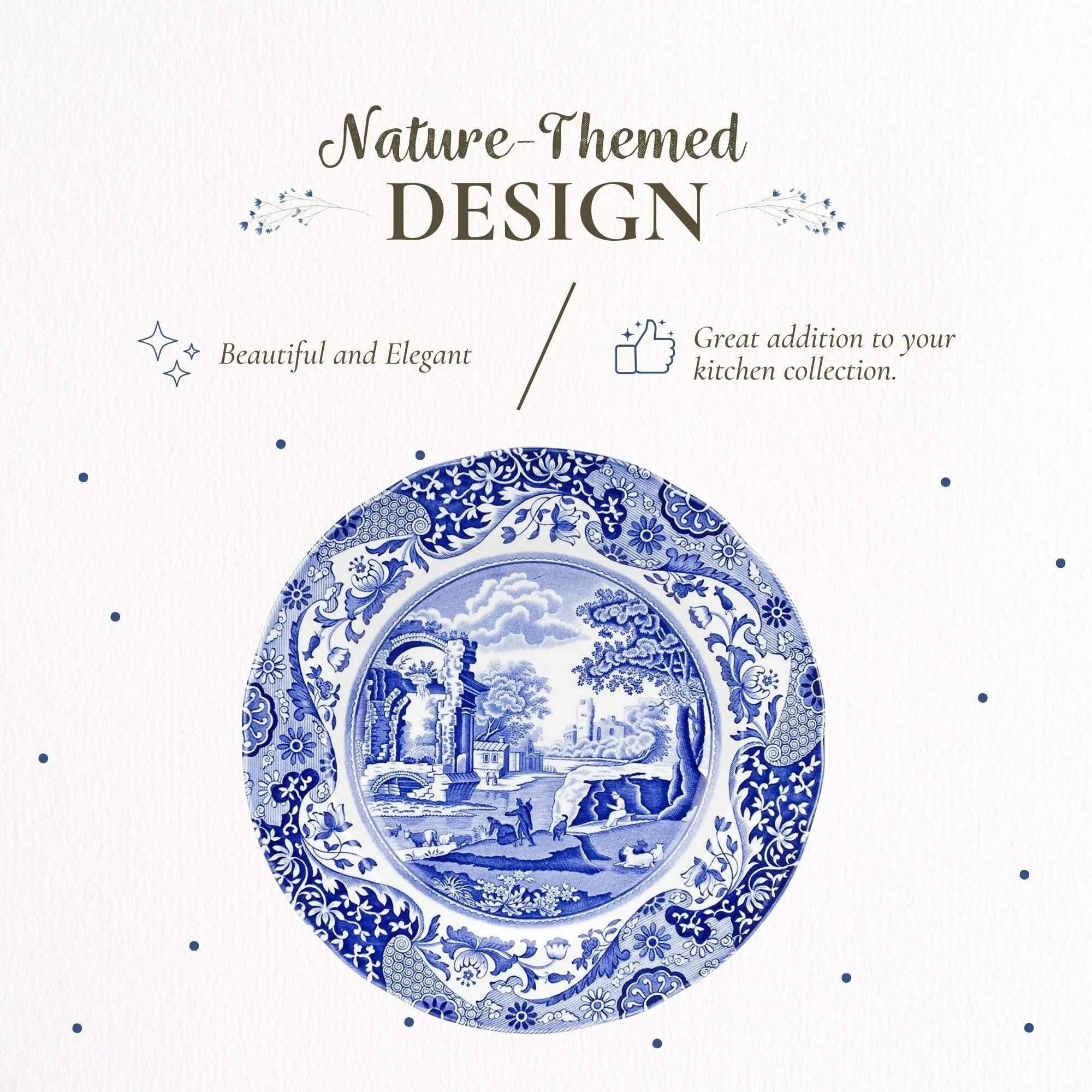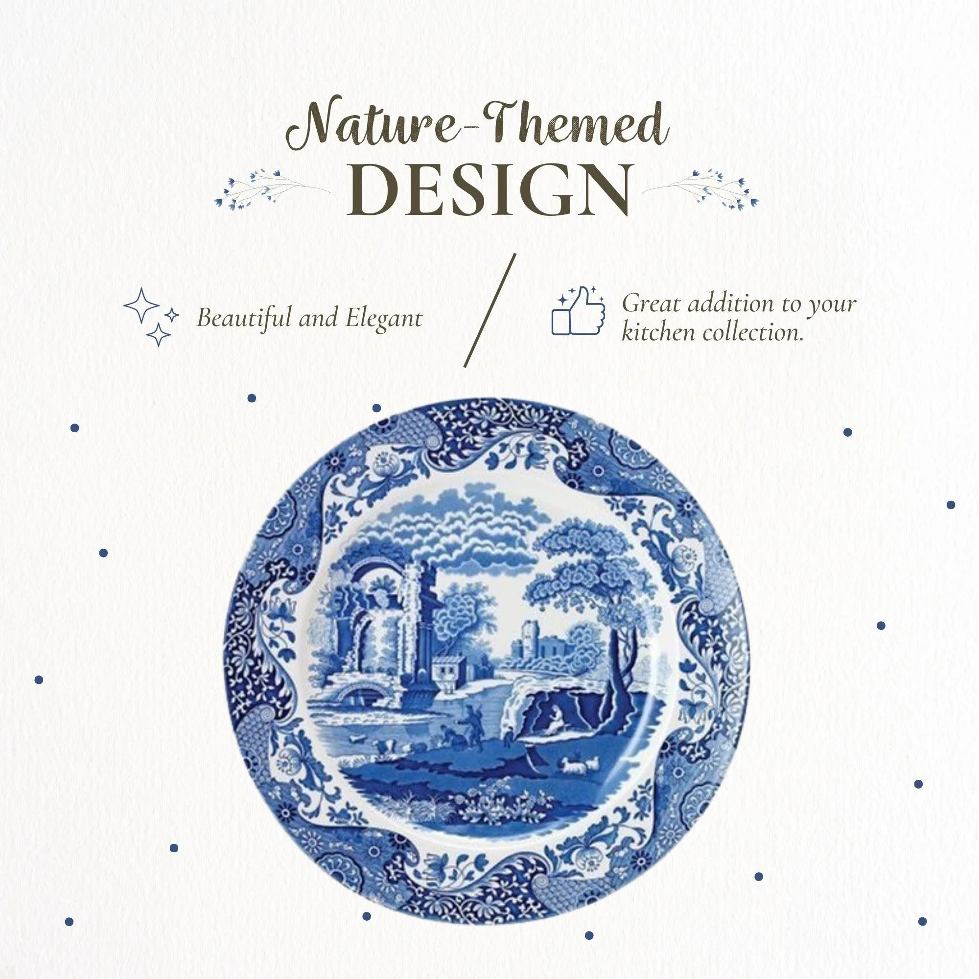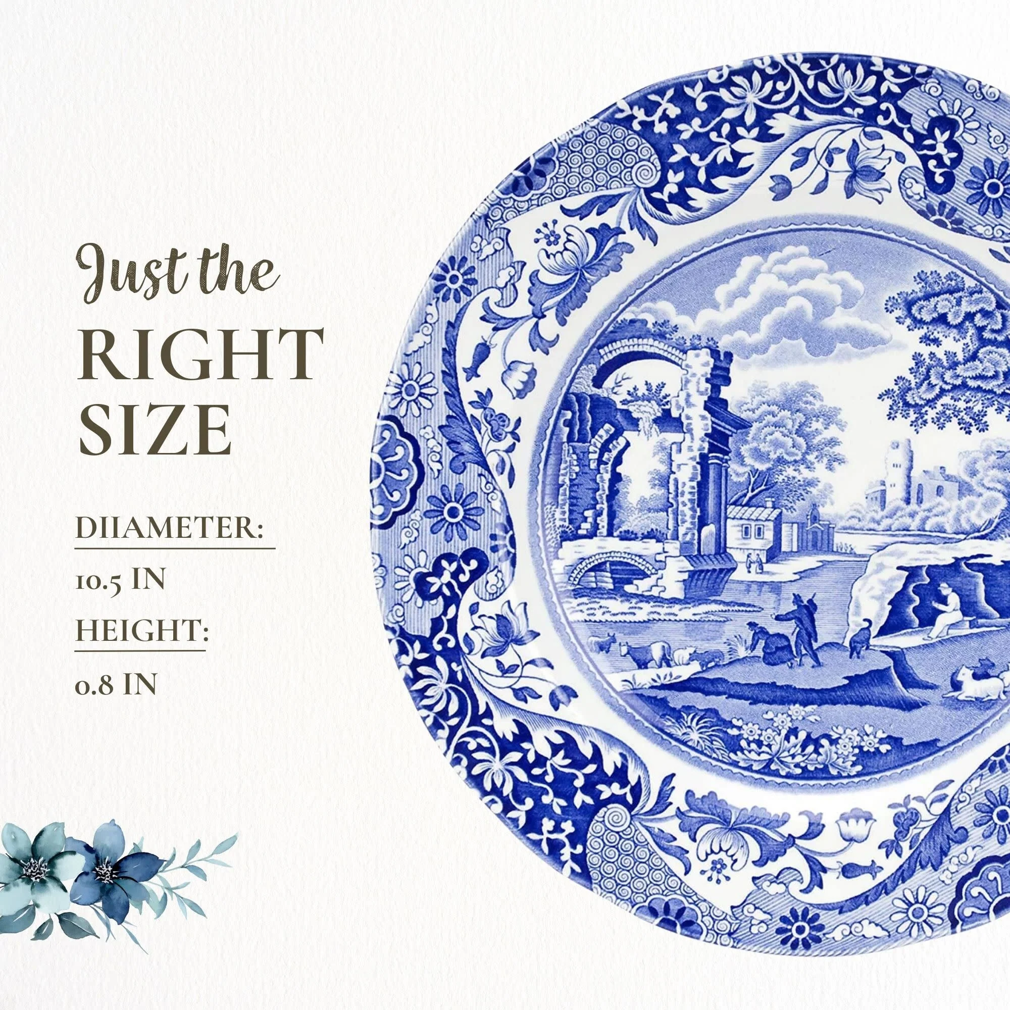 Spode Blue Italian Plate - Earthenware Tableware for Elegant Parties/Casual Dinners & Countryside Scene - Elegant Dining Plate - Microwave & Dishwasher Safe - New