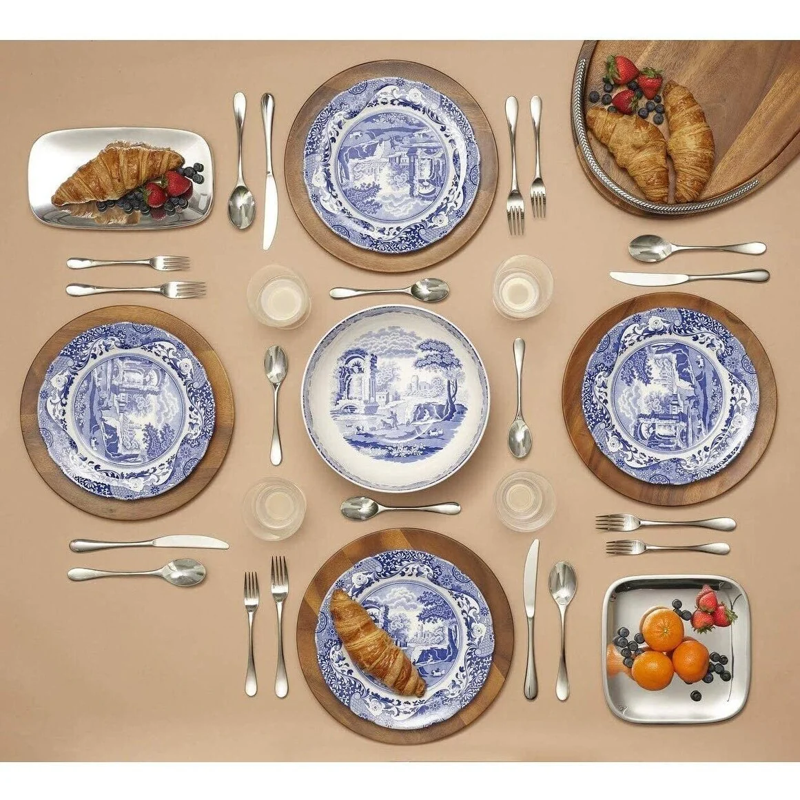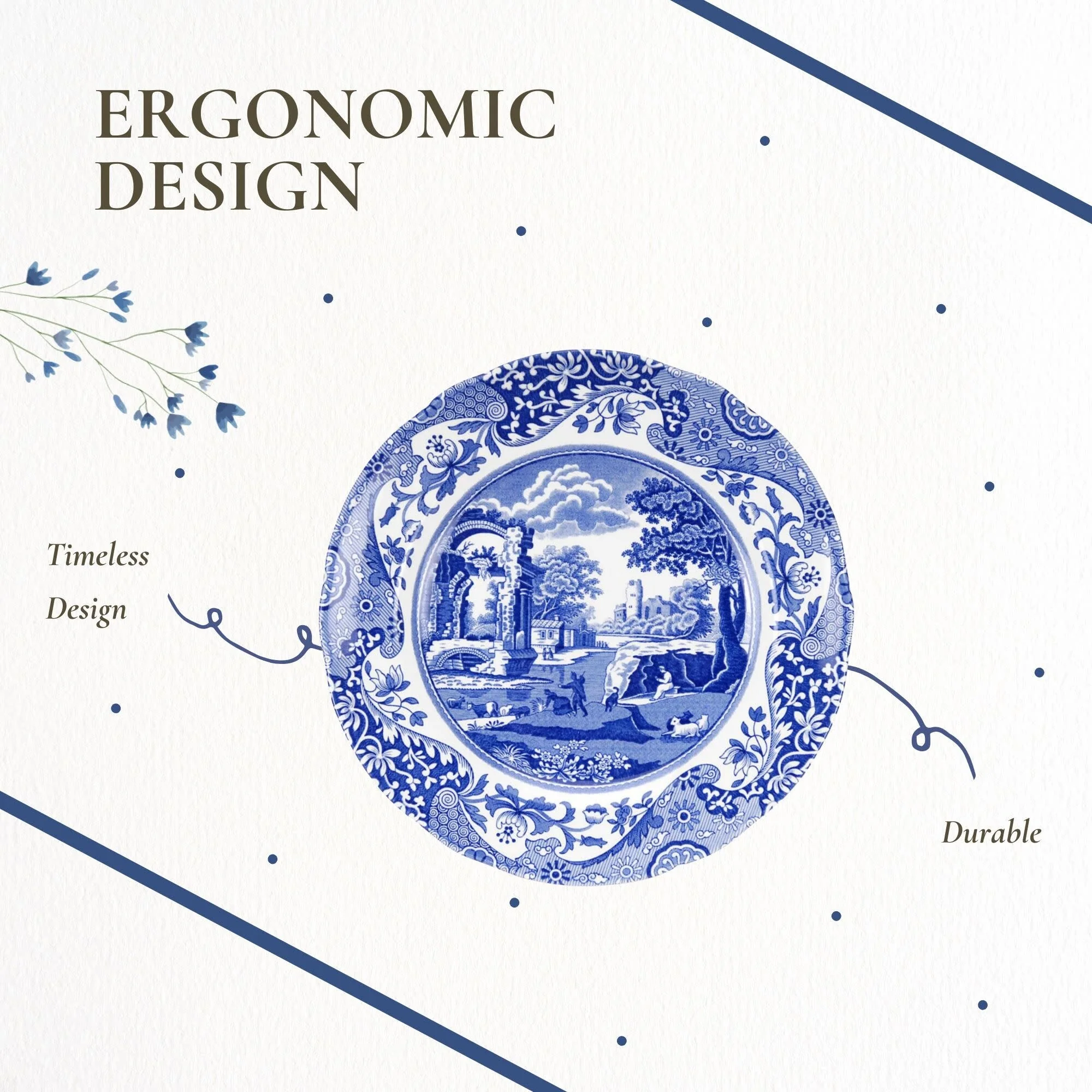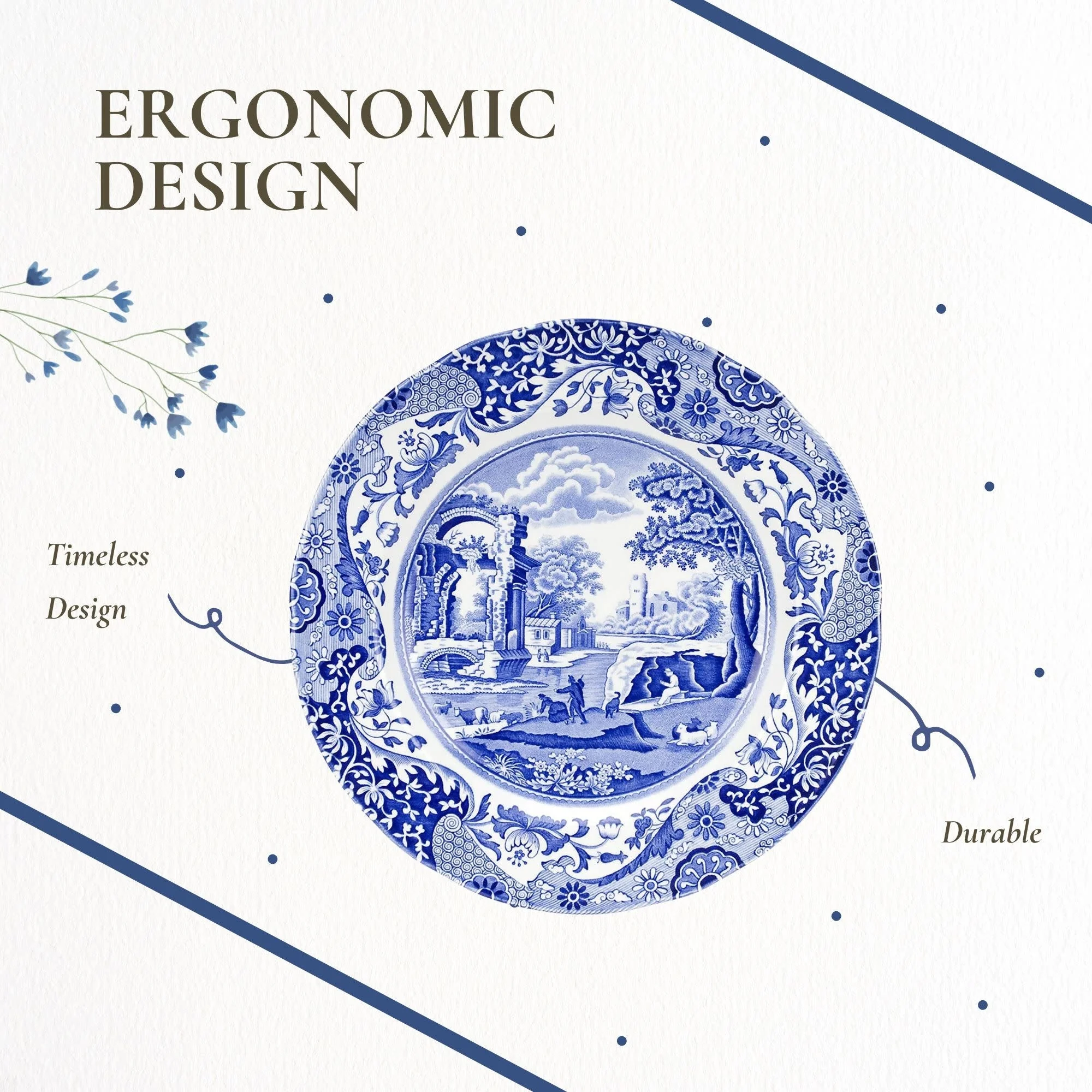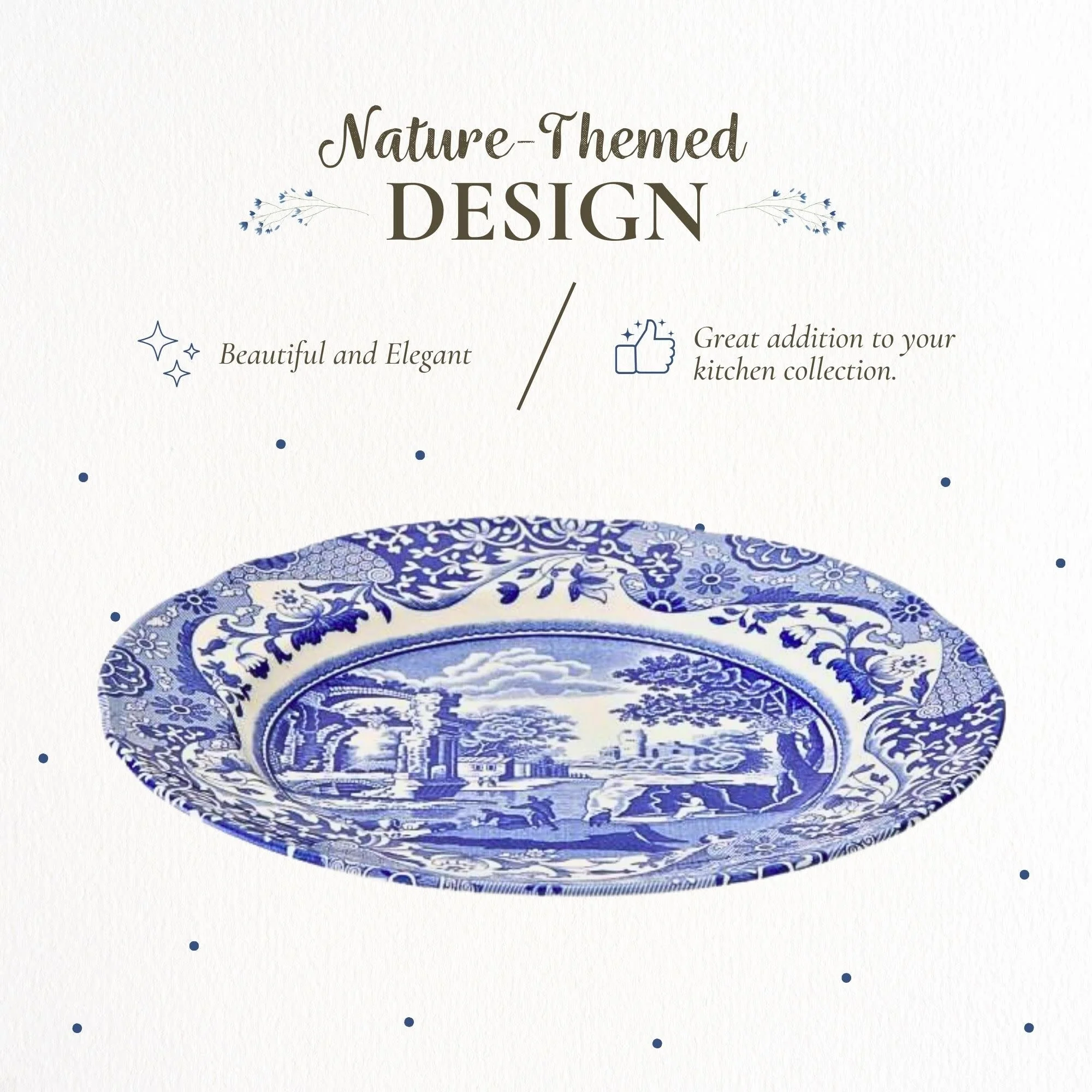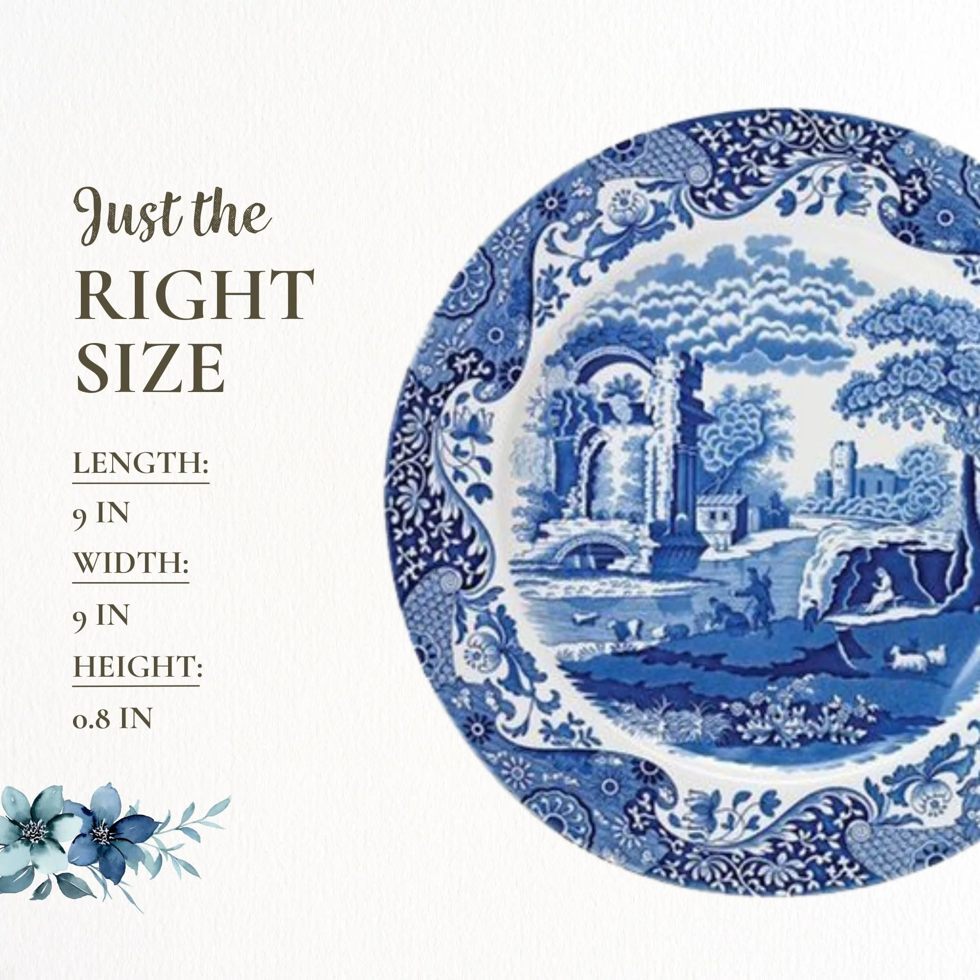 Spode Blue Italian Plate - Earthenware Tableware for Elegant Parties/Casual Dinners & Countryside Scene - Elegant Dining Plate - Microwave & Dishwasher Safe - New