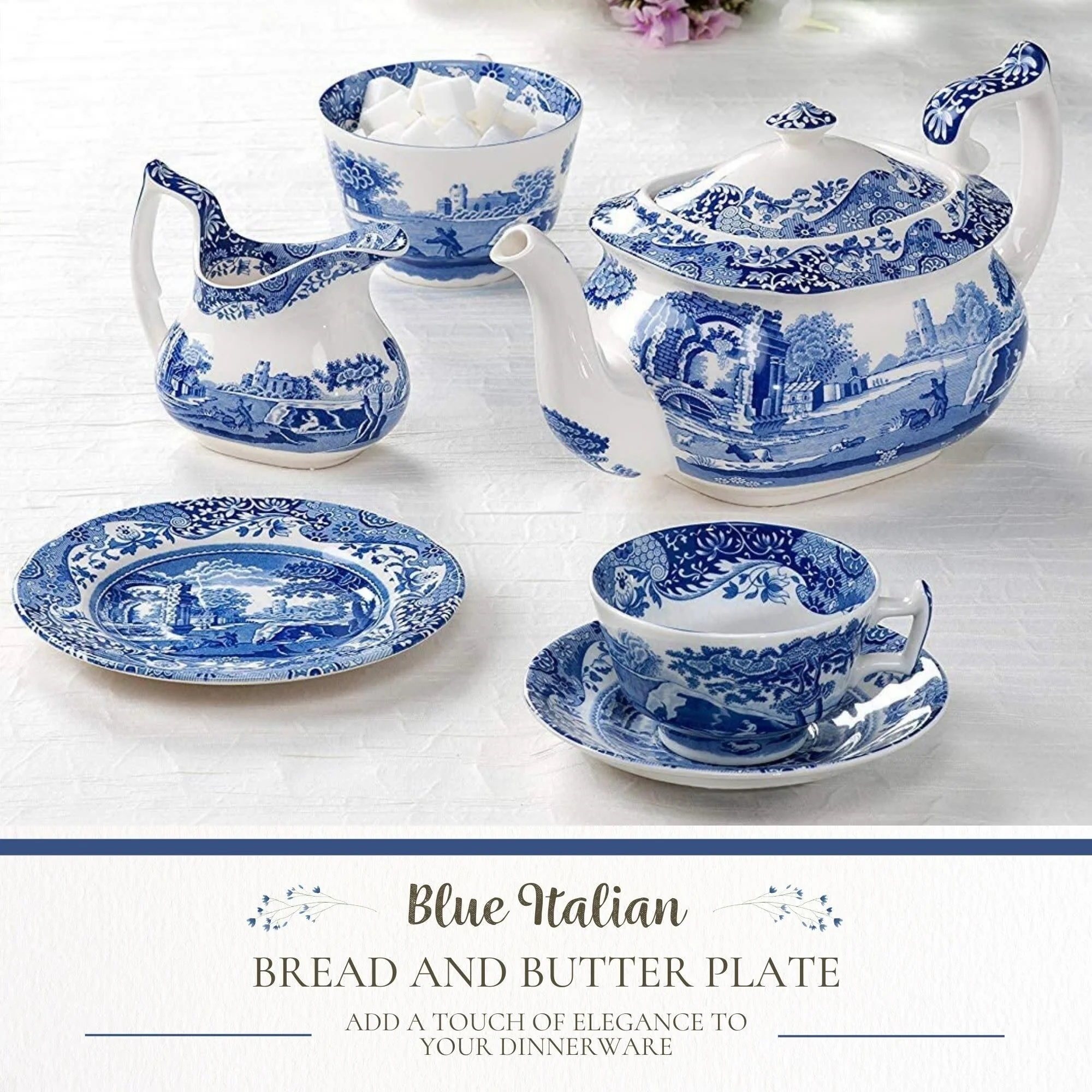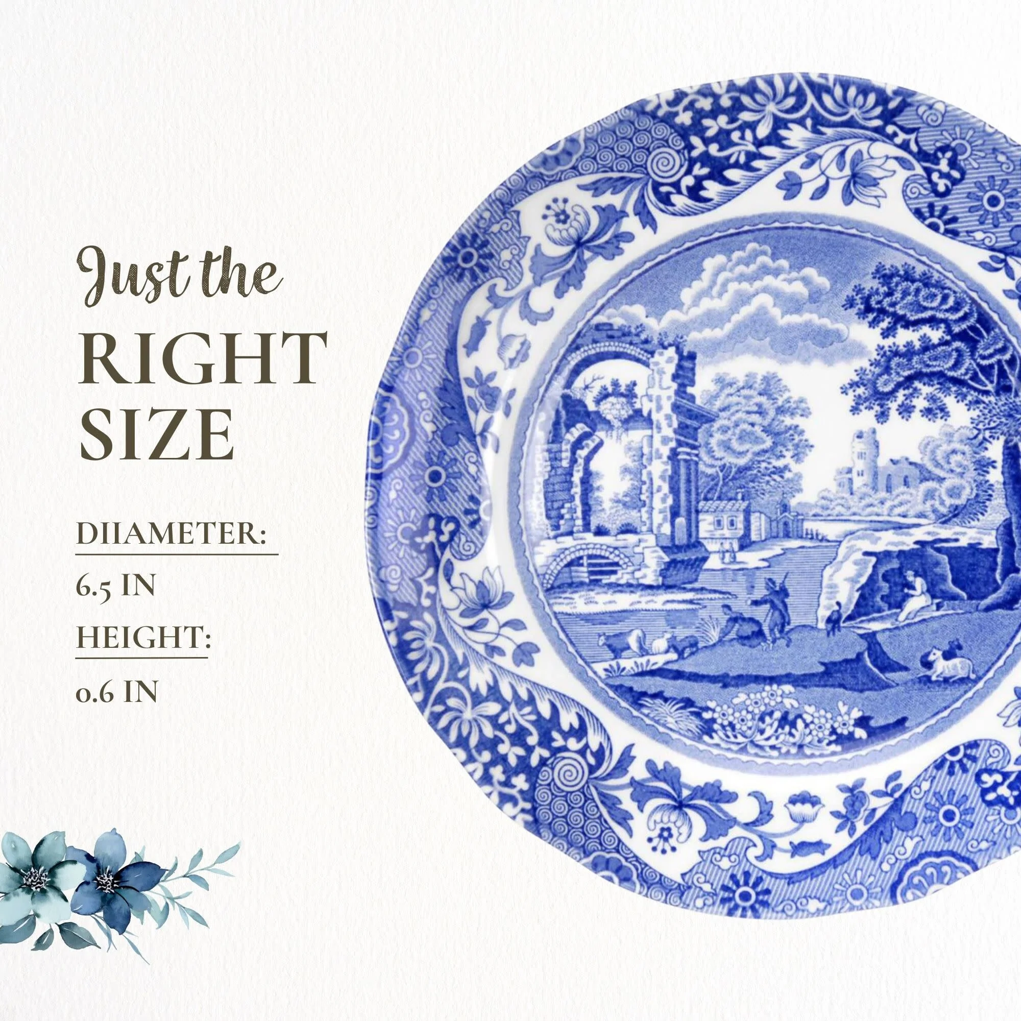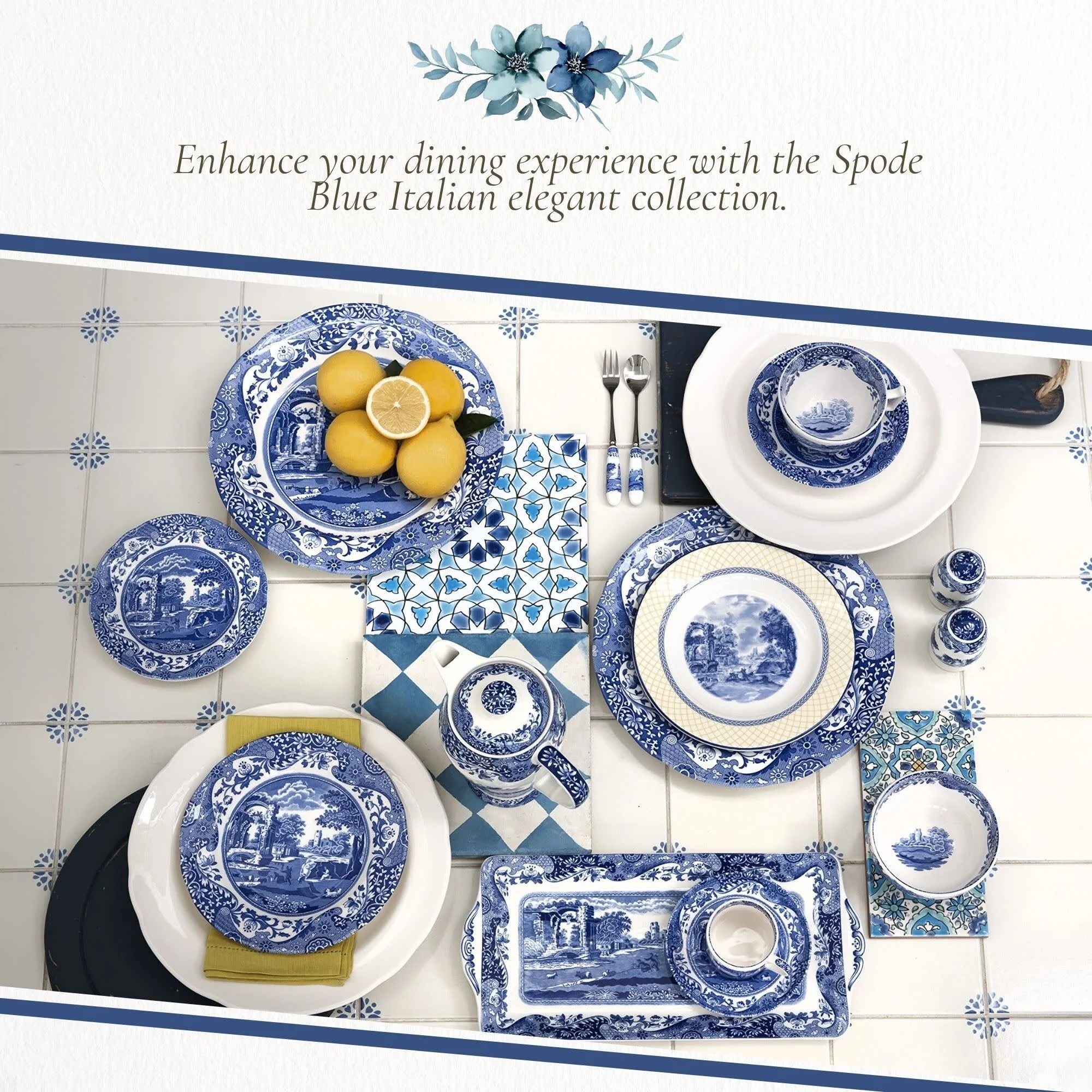 Bring elegance and heritage to your table with the Spode Blue Italian Plate. This beautifully crafted ceramic plate features a rich blue and white earthenware design that captures the charm of traditional Oriental dinnerware. The finely detailed Imari Oriental border, inspired by 18th-century Eastern patterns, gracefully frames a romantic Italian countryside scene, blending cultural artistry with classic European storytelling. This decorative yet functional piece of tableware is made from durable earthenware, ensuring it withstands daily use while elevating your dining experience. Whether you're serving a slice of fresh bread, a small dessert, or pairing it with a larger place setting, this plate adds a touch of refinement to any meal. Designed for modern convenience, it’s both microwave safe and dishwasher safe, making it easy to enjoy and maintain. Its timeless blue and white color palette coordinates effortlessly with other oriental dinnerware or modern tableware collections, making it a thoughtful gift or an everyday staple. Whether part of a formal setting or casual brunch, this small plate delivers lasting beauty and everyday charm to your table.