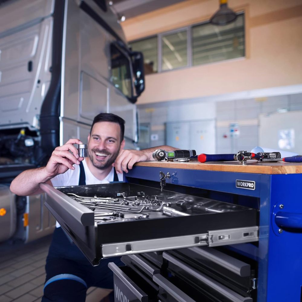 Easy to Assembly: If you’d love to tackle bigger projects in your workshop or garage, but lack the space for a separate workbench and tool chest, the WORKPRO 46-Inch tool chest with a hardwood top is a good choice. It is easy to assemble with a double-side mountable handle, which will be suitable for your usage habits, and equipped with enough hardware to install the handle and casters.